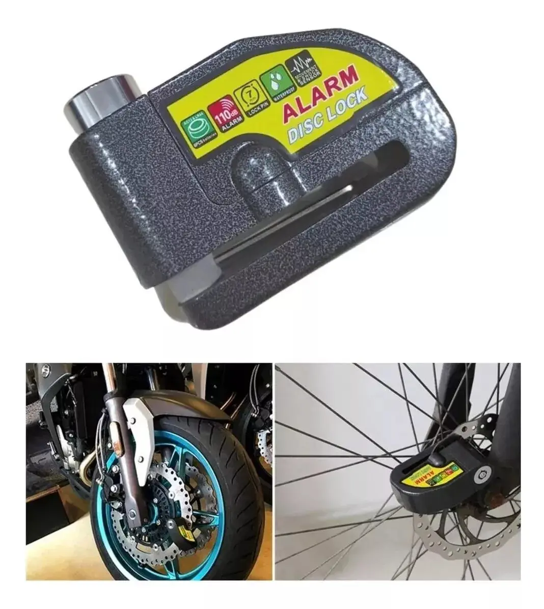 🔒 Protege tu moto o bicicleta con el CANDADO FRENO DISCO ALARMA PARA MOTO Y BICICLETA + CANDADO SEGURO PARA MANILAR, un sistema de seguridad completo y confiable. 🛡️ Este candado combina un freno de disco con alarma integrada y un candado adicional para el manillar, brindándote una protección avanzada contra robos. Con una alarma de 110 dB, materiales resistentes y un diseño impermeable, es perfecto para cualquier condición climática.