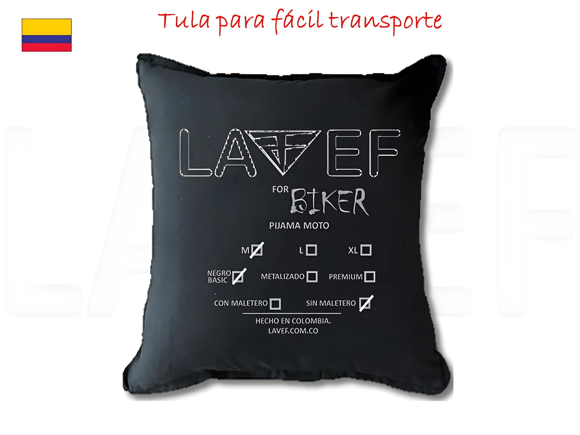 - Está disponible en tallas M, L y XL. Para elegir la correcta, le recomendamos medir su motocicleta. La talla M mide 220 cm de largo, 100 cm de ancho, 75 cm de alto trasero y 145 cm de alto delantero. La talla L es de 240x110x75x145 cm, y la XL de 260x110x95x145 cm.