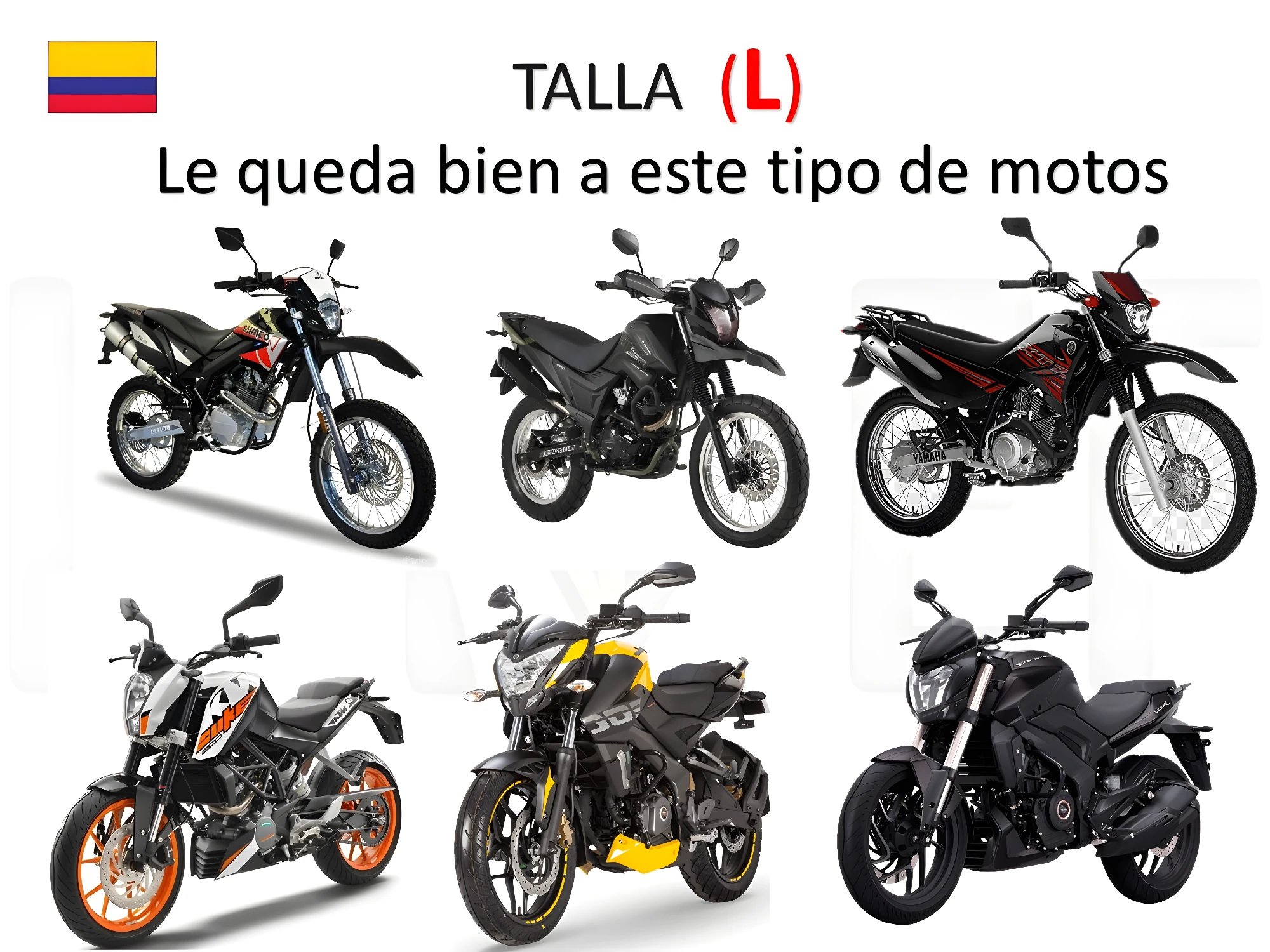 - ¿Qué tallas están disponibles y cómo elijo la correcta para mi moto?