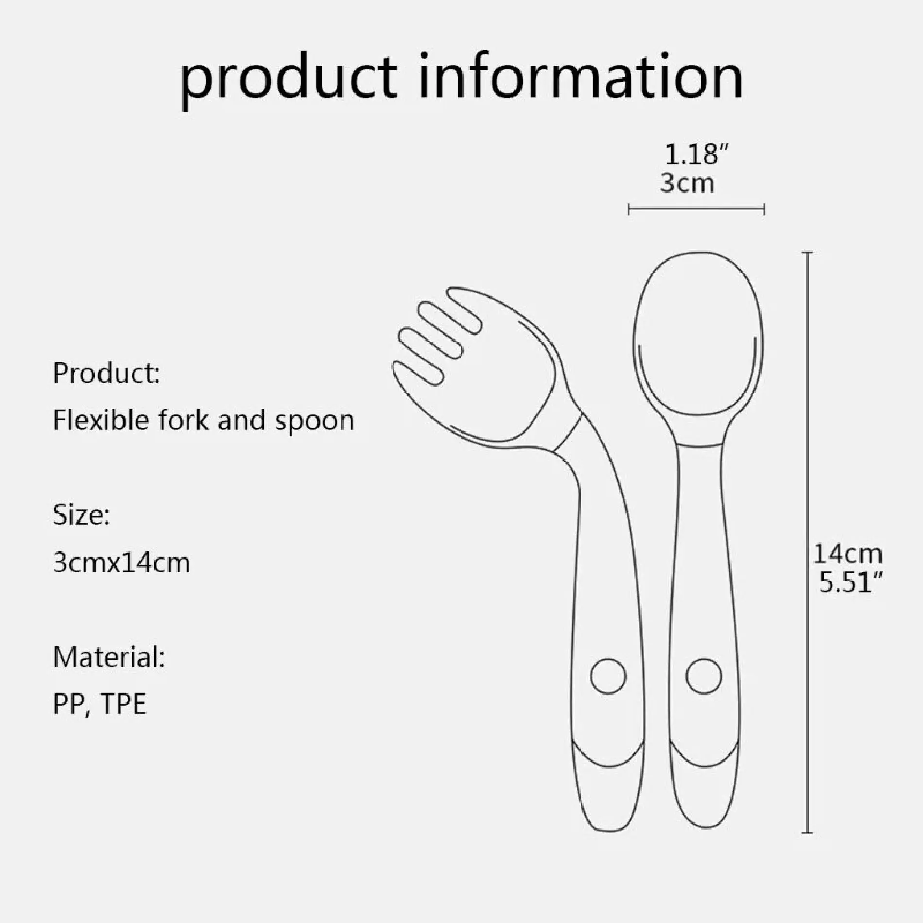 🌟 Diseñados pensando en las necesidades de los bebés, nuestros cubiertos flexibles facilitan el proceso de aprendizaje de la alimentación independiente. 🍴 Su mango flexible se adapta a la boca y las manos pequeñas, mientras que los materiales de grado alimenticio garantizan la seguridad y la higiene.