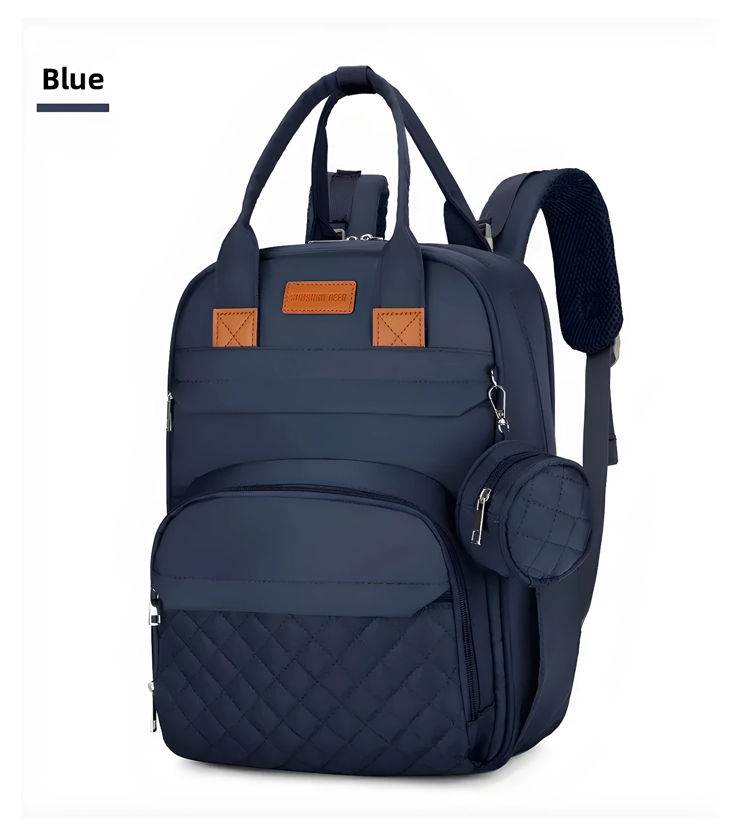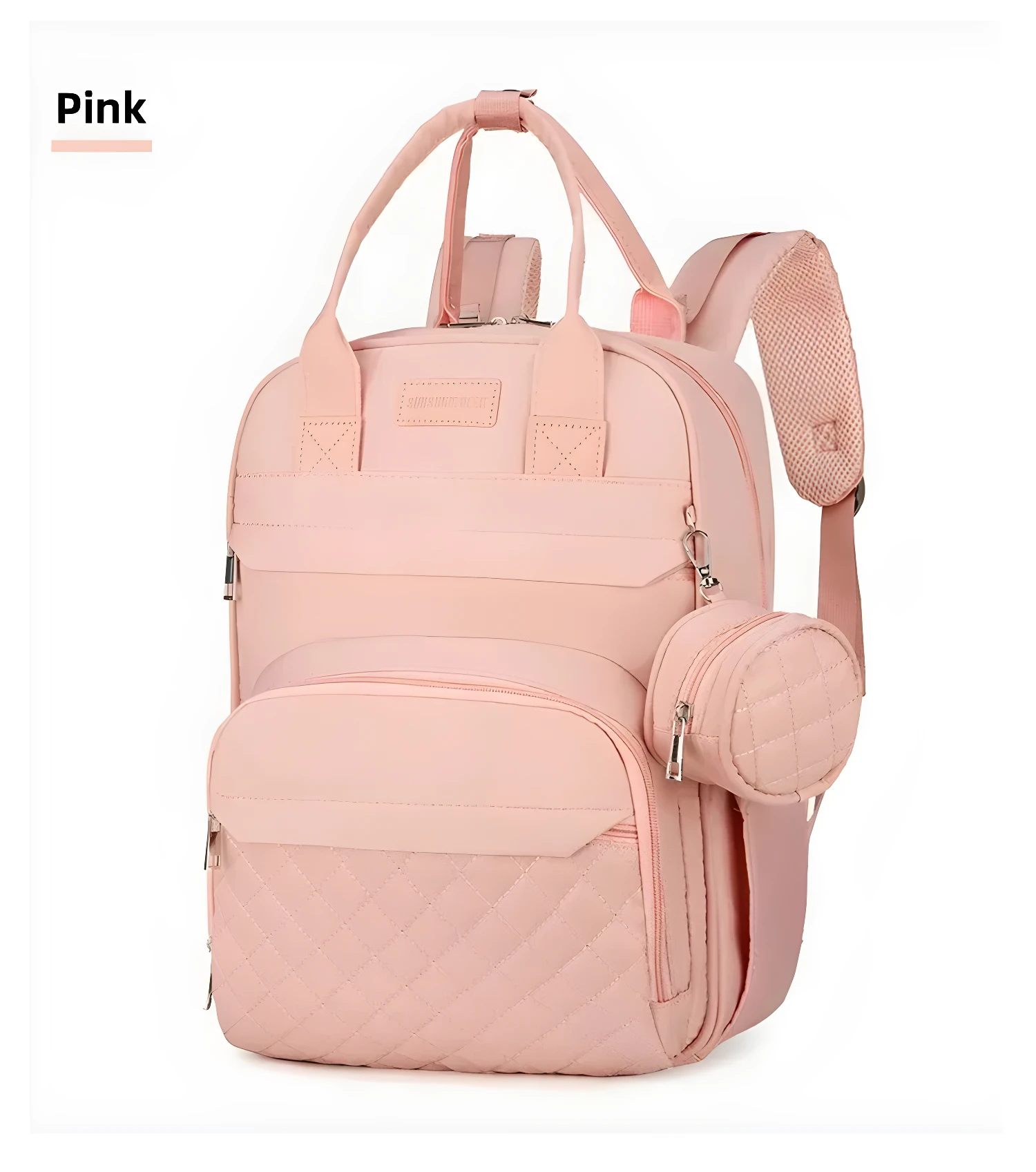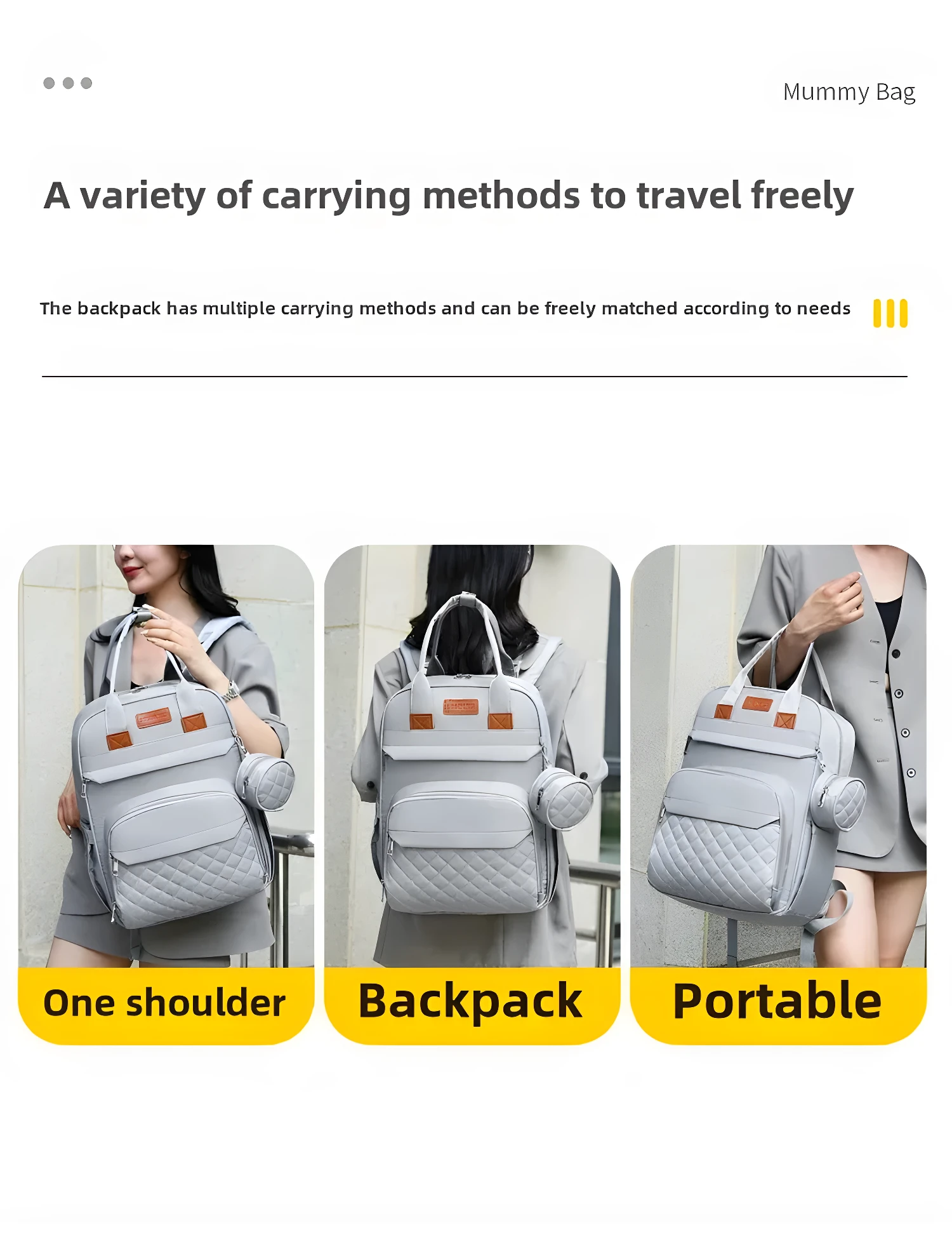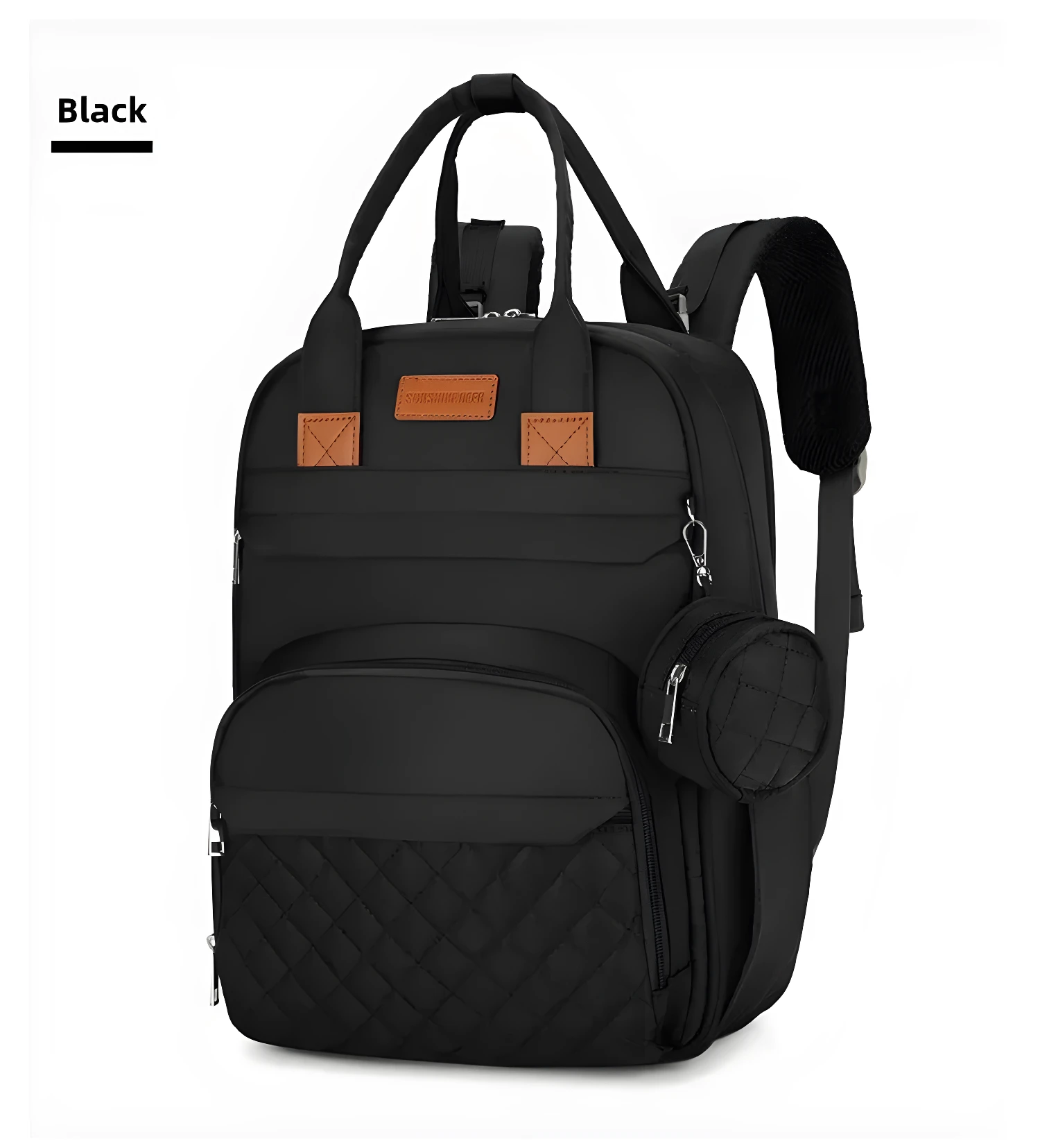 - ✔️ Accesorios: Incluye un práctico monedero a juego que se puede acoplar a la pañalera, perfecto para guardar pequeños objetos personales.