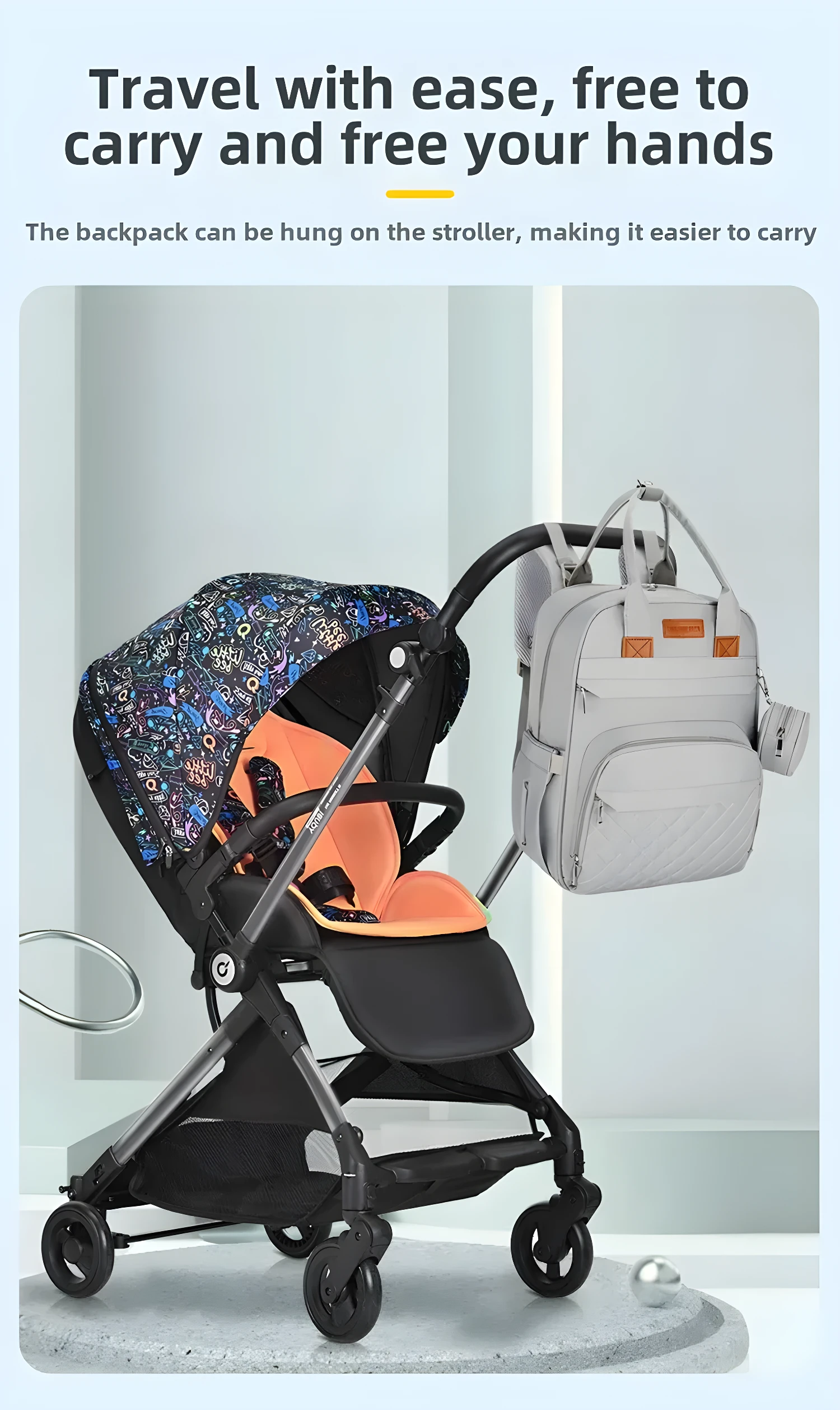 - 🚶♀️ Libertad de Movimiento: Transporta todo lo necesario con total comodidad gracias a sus correas acolchadas y la opción de colgarla en el cochecito, dejando tus manos libres para otras tareas.