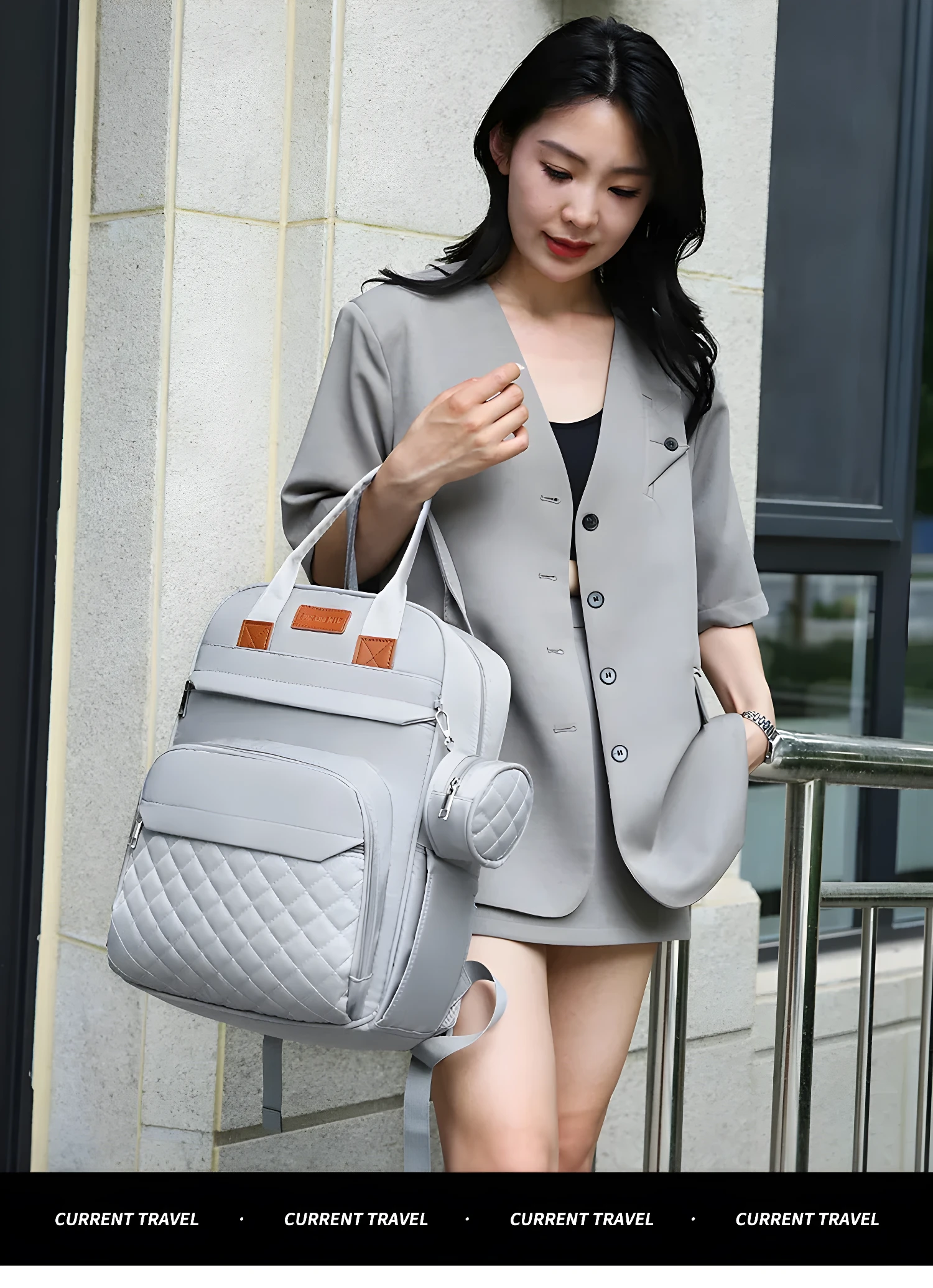 - 💧 Higiene y Practicidad: Gestiona la ropa húmeda o pañales usados de forma segura y separada en su bolsillo impermeable, manteniendo el interior de tu bolso siempre limpio y organizado.