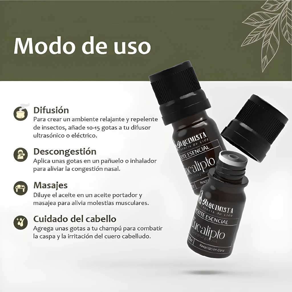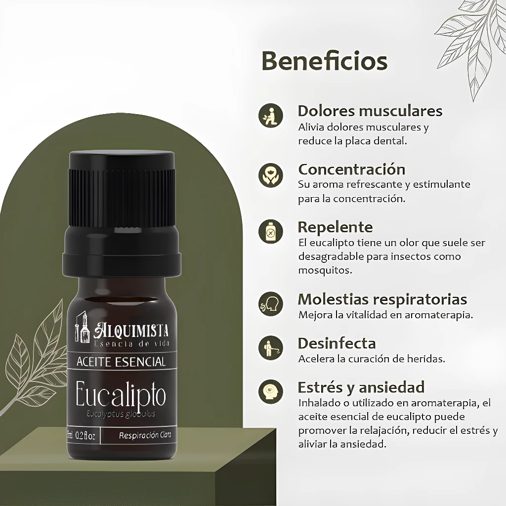 ✨ No esperes más para disfrutar de los múltiples beneficios que el Aceite Esencial de Eucalipto tiene para ofrecerte. ¡Conecta con la naturaleza y mejora tu bienestar diario! 🛒¡Haz tu pedido ahora!