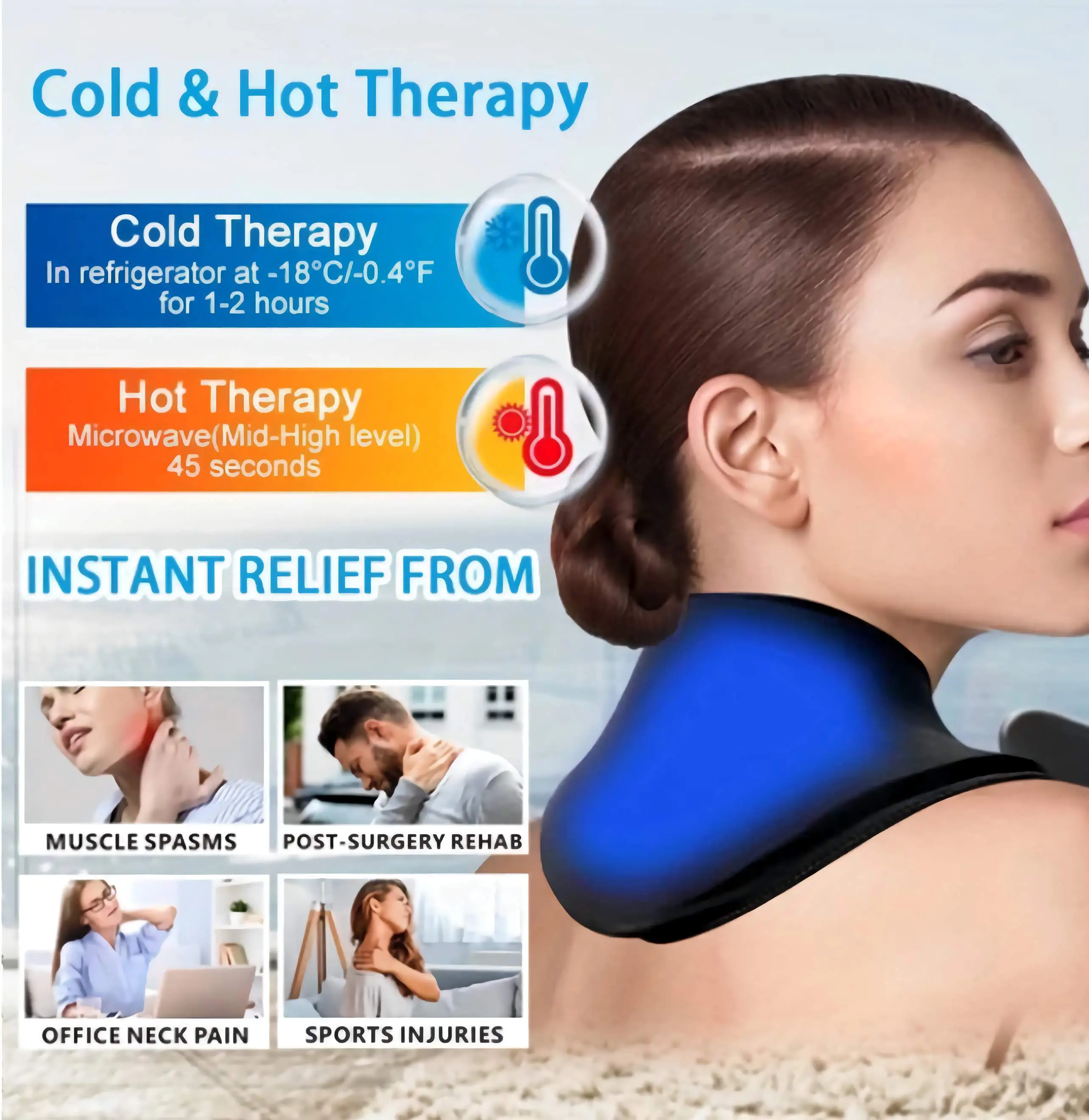 La terapia dual es un exito para mi cuello. Uso calor para relajar y frio cuando siento mas hinchazon. Ademas, el diseño 360° asegura una cobertura completa, lo cual es genial.