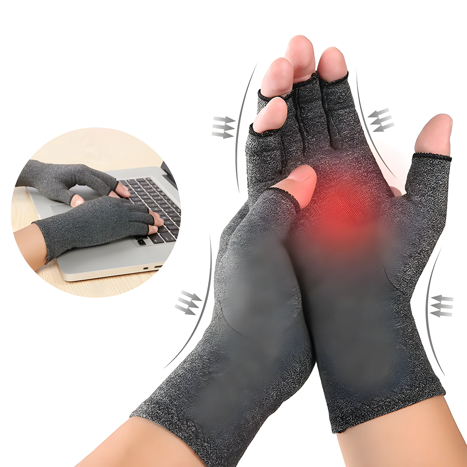 - Sí, además de su compresión suave, estos guantes están diseñados para brindar soporte y mantener sus manos cálidas. Esto contribuye a mejorar la circulación y puede ayudar a reducir la inflamación.