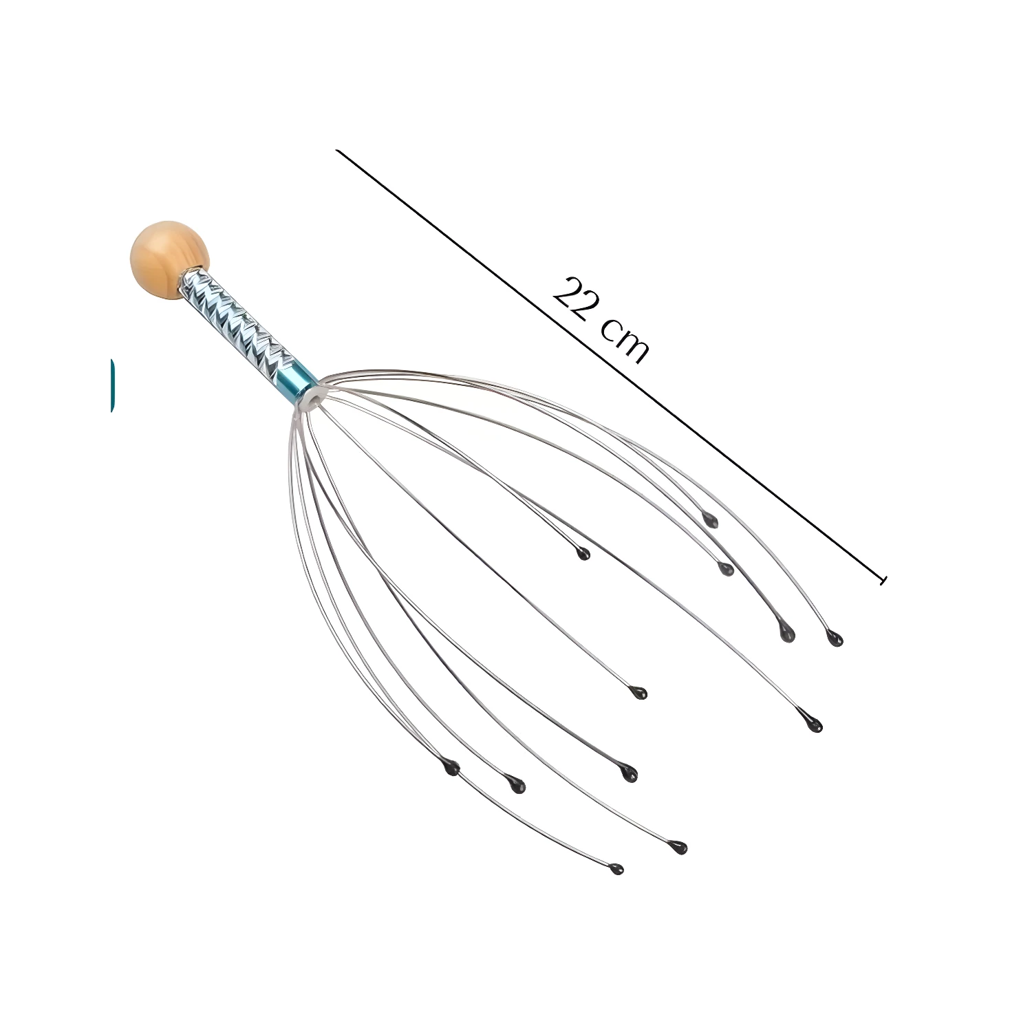 - Los masajeadores están elaborados con alambres flexibles de acero inoxidable. Para mayor confort, las puntas que entran en contacto con el cuero cabelludo están recubiertas.