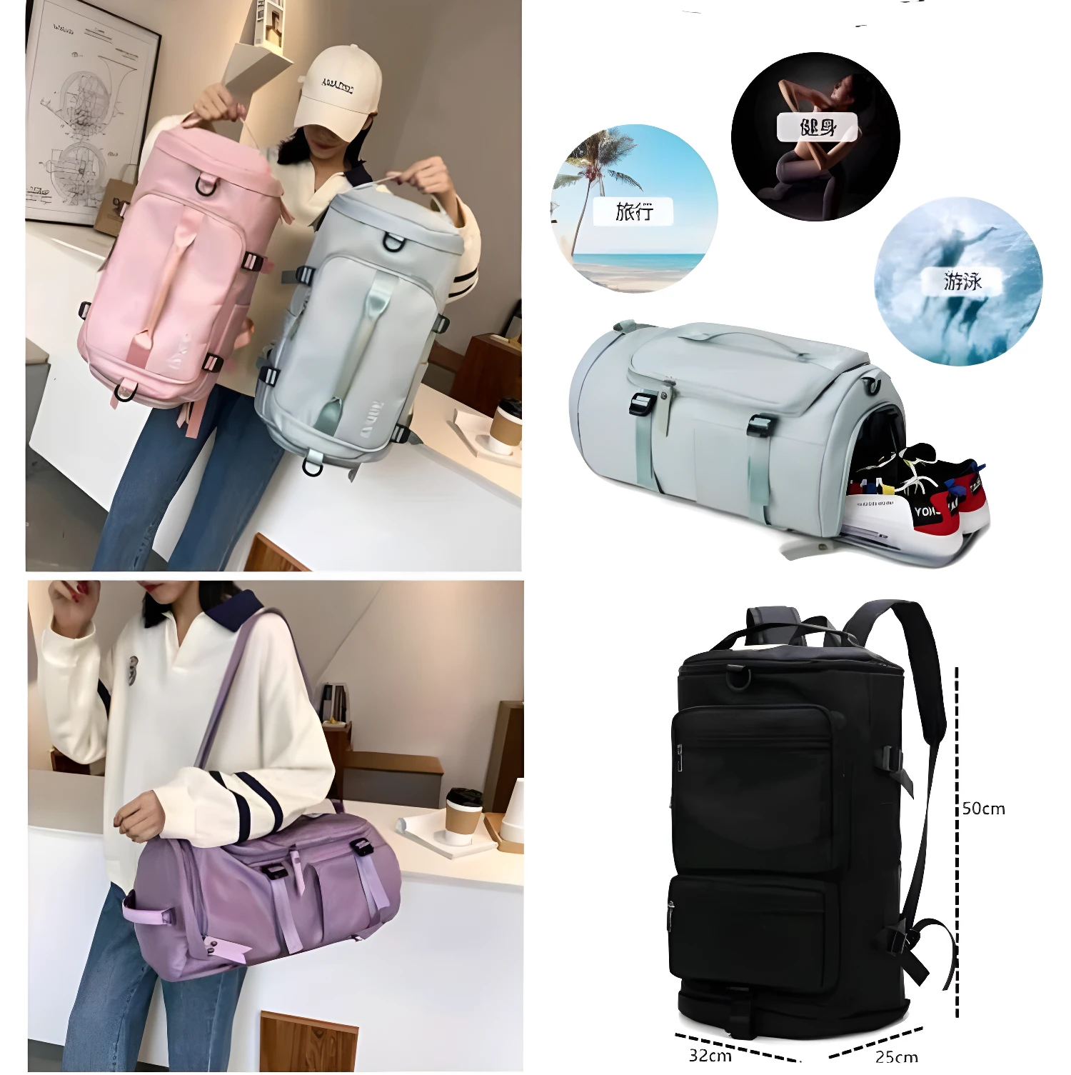 - ✅ Compartimento para zapatos: Bolsillo separado diseñado para mantener tus zapatos aislados y el resto de tus pertenencias limpias y organizadas.