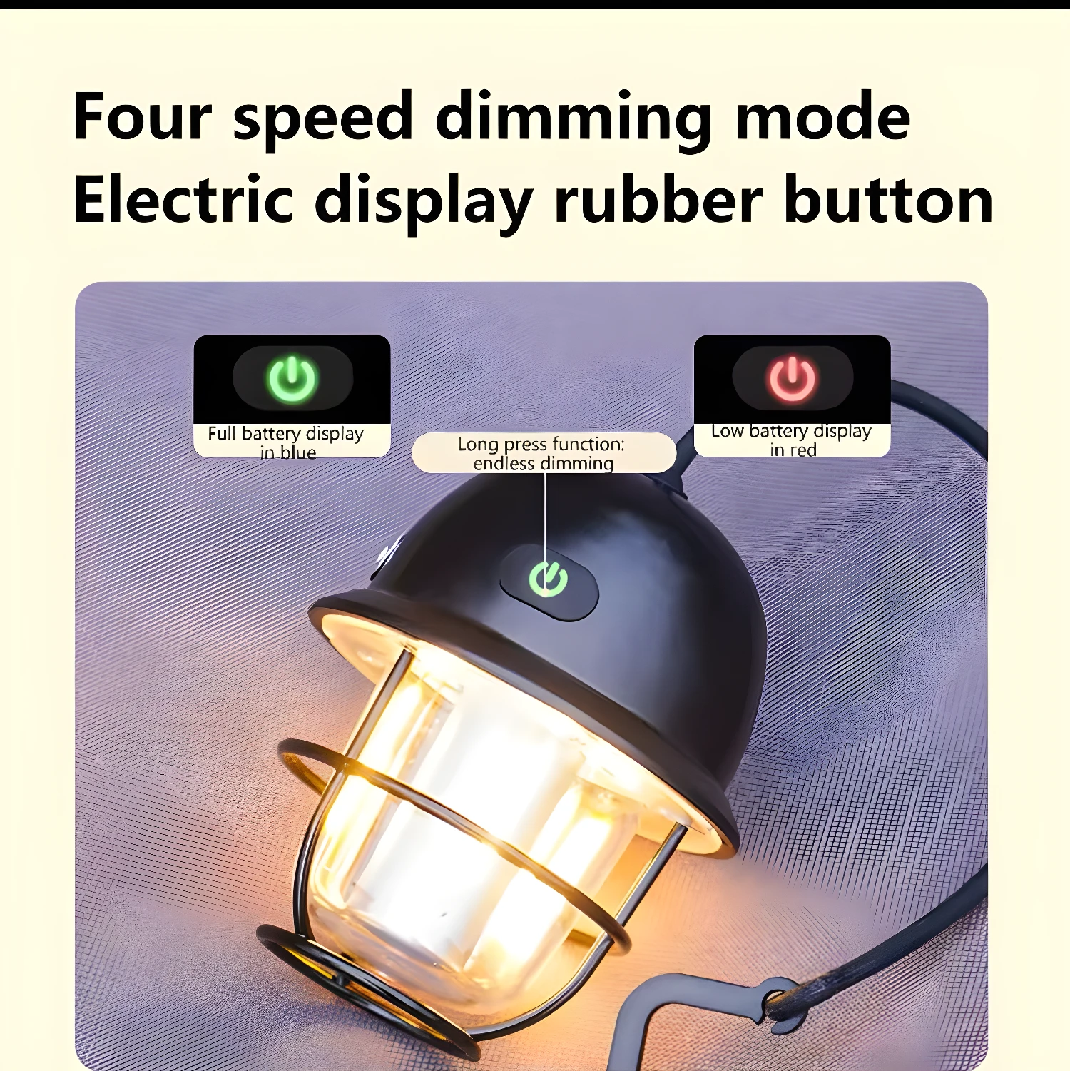 - ✨ Estilo que Atrae Miradas: No solo ilumina, sino que también decora. Su estética retro la convierte en un accesorio llamativo que realza la belleza de tu equipo de camping o espacio personal.