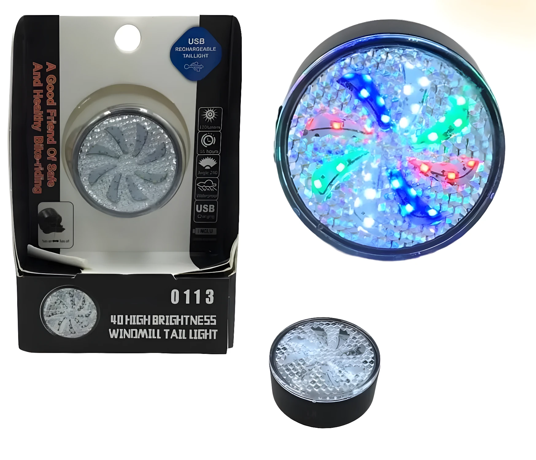 Esta luz trasera es fantástica para mi bicicleta. Me siento mucho mas seguro en la carretera, especialmente de noche. Los 8 modos de luz son super utiles y la carga USB es una maravilla. Ademas, el diseño de molino es muy llamativo.