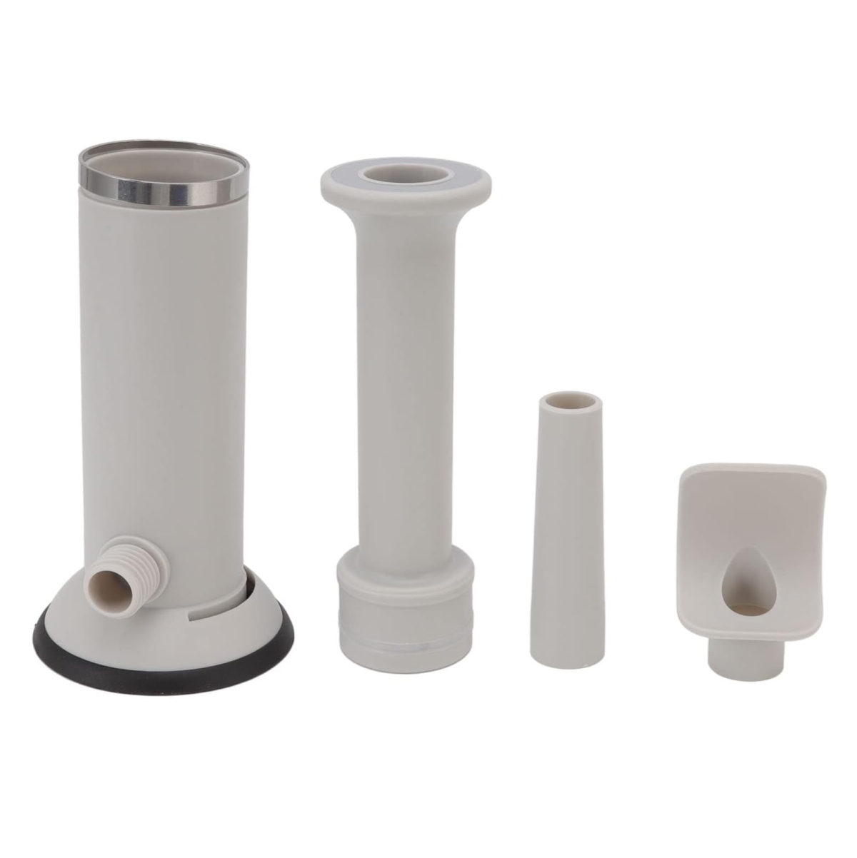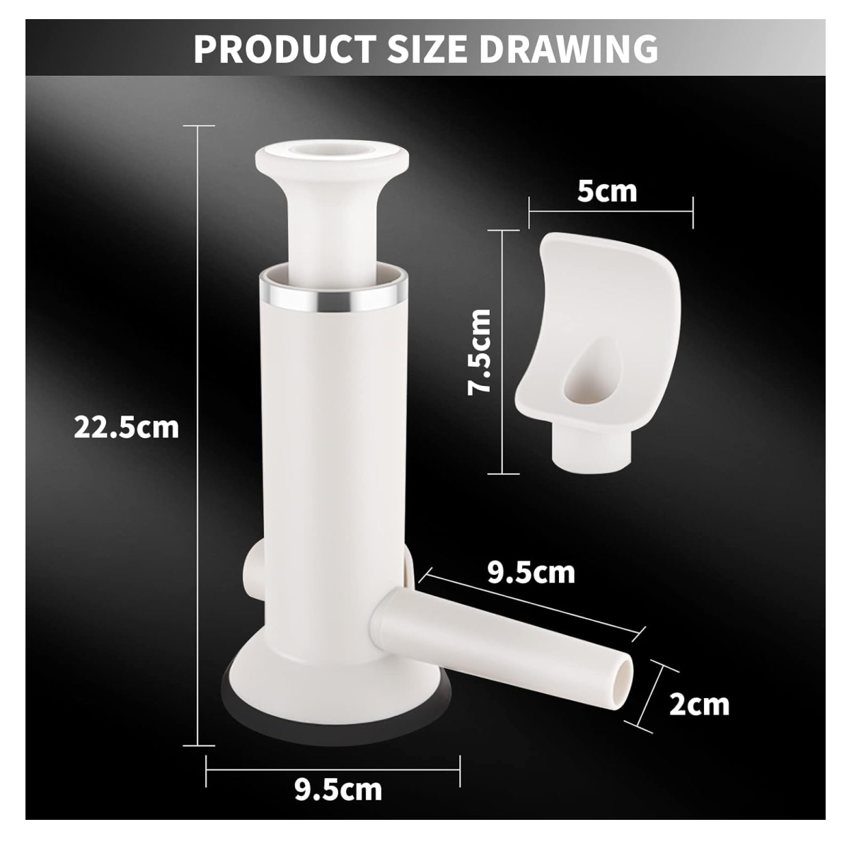 - La embutidora tiene una altura total de 22.5 cm y su base mide 9.5 cm. El accesorio para albóndigas tiene un tamaño de 7.5 cm por 5 cm, y el tubo de salida mide 9.5 cm de largo con un diámetro de 2 cm, dimensiones adecuadas para un manejo cómodo y almacenamiento práctico.