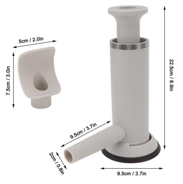 - La embutidora tiene una altura total de 22.5 cm y su base mide 9.5 cm. El accesorio para albóndigas tiene un tamaño de 7.5 cm por 5 cm, y el tubo de salida mide 9.5 cm de largo con un diámetro de 2 cm, dimensiones adecuadas para un manejo cómodo y almacenamiento práctico.