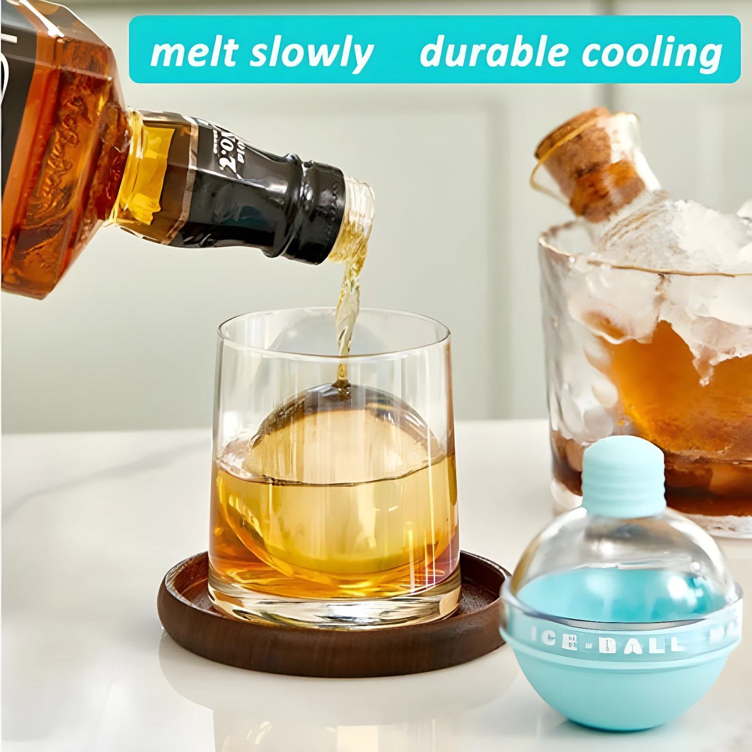 - 🥶 Hielos de gran tamaño y larga duración: Las esferas de 2.5 pulgadas se derriten más lentamente, manteniendo tus bebidas frías por más tiempo y sin diluir el sabor.