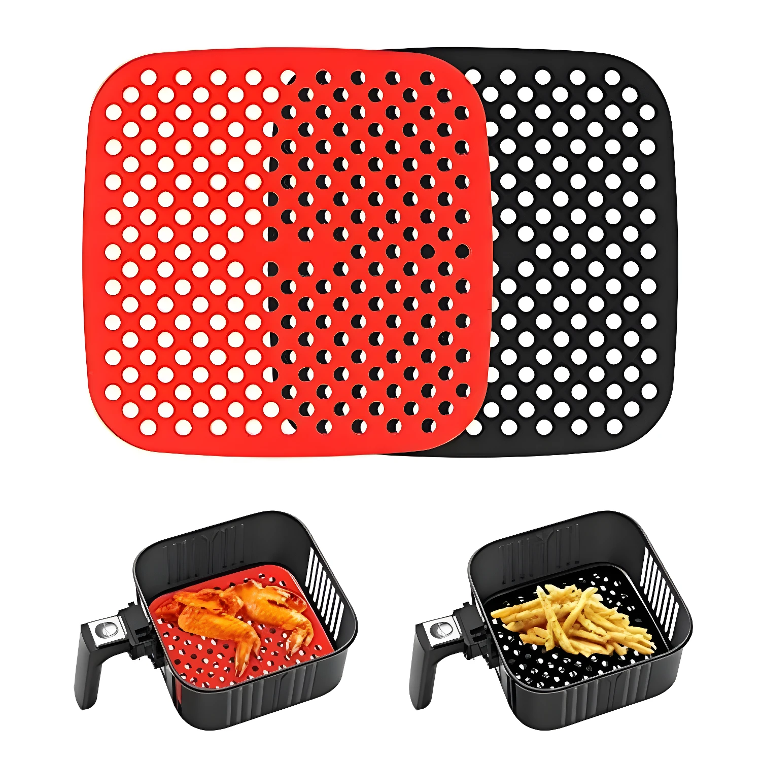 - Está fabricado con silicona de alta calidad, grado alimenticio, lo que garantiza que es seguro, no tóxico y muy resistente a las altas temperaturas que alcanzan las freidoras de aire. Es un material duradero y confiable para preparar sus comidas.