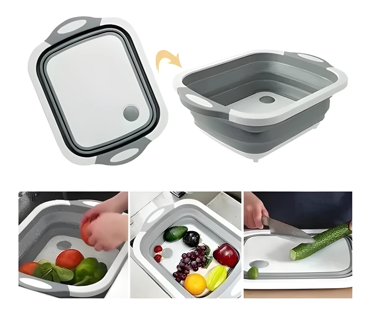 - 🧺 Multifuncional: Úsala como tabla de cortar, colador o cesta de almacenamiento, todo en un solo producto.