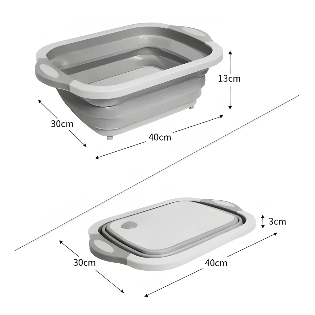 - La tabla multifuncional está diseñada para servir como tres productos en uno: una práctica tabla de cortar, un colador para drenar líquidos y una cesta de almacenamiento. Es ideal para lavar, cortar y guardar alimentos en la cocina.