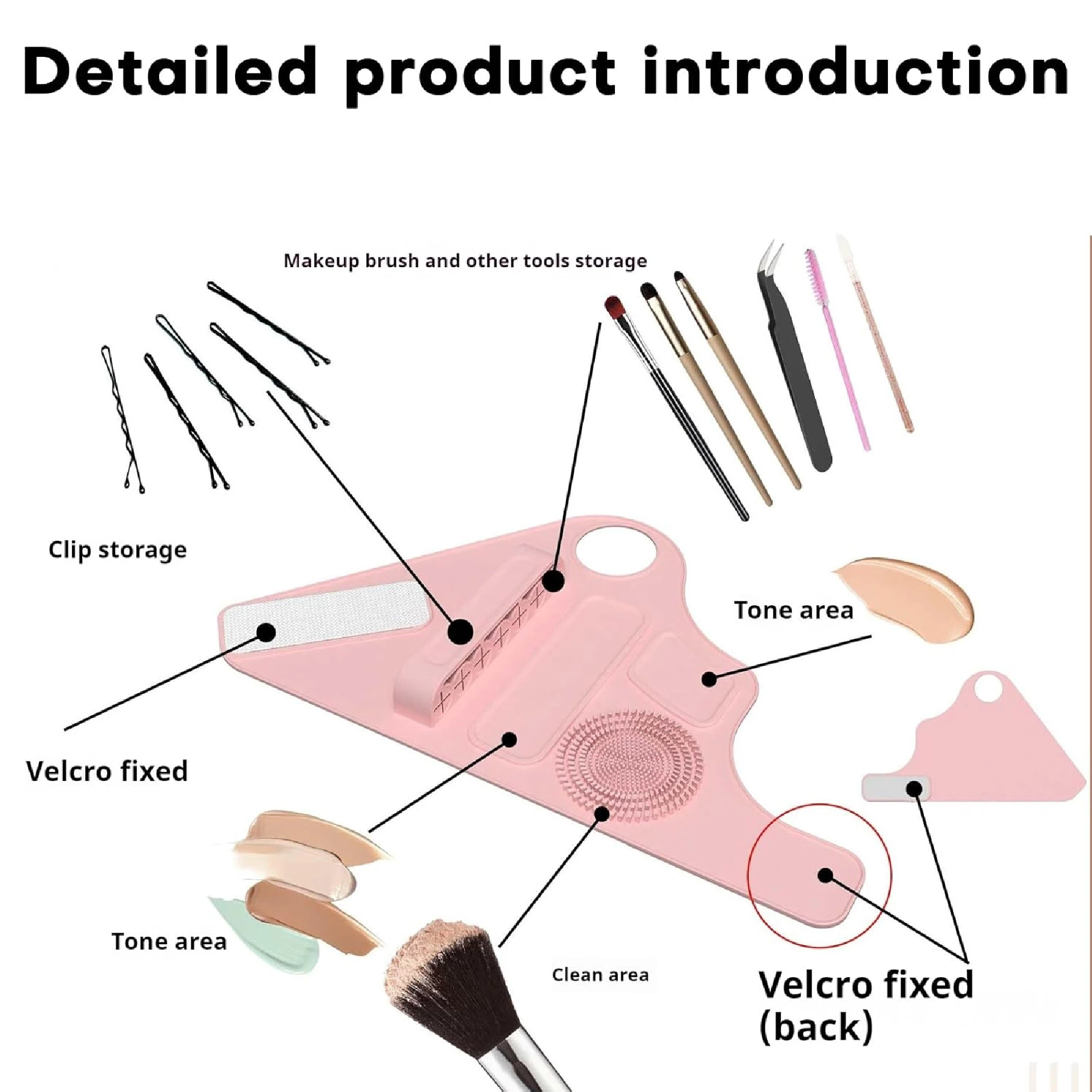 - ✅ Multifuncionalidad Avanzada: Integra soportes para varias brochas de maquillaje y una superficie texturizada ideal para limpiar el exceso de producto o mezclar bases y sombras.