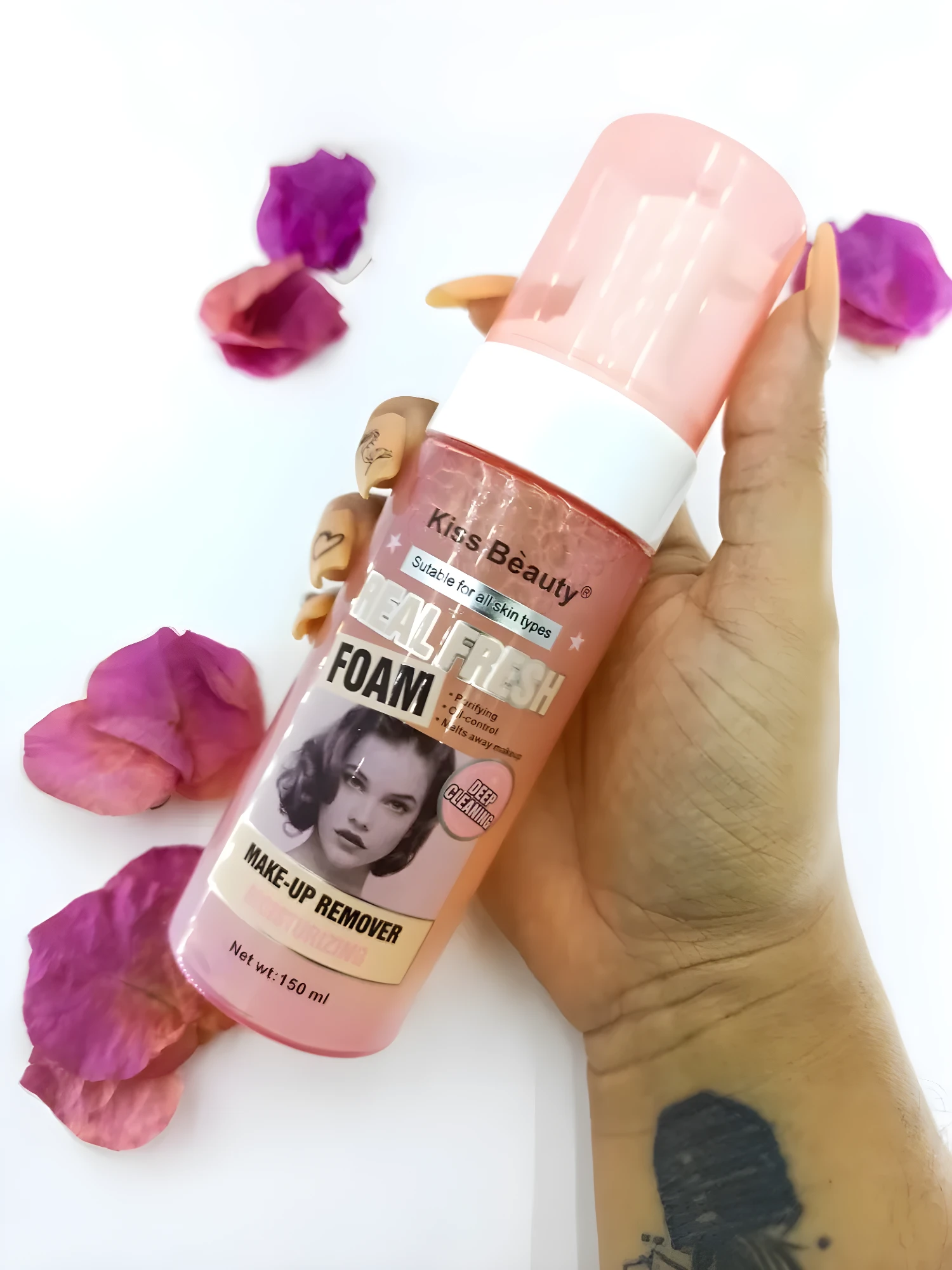 ✨ Descubre el Removedor de Maquillaje Hidratante Kiss Beauty Real Fresh Foam, tu aliado perfecto para una limpieza facial profunda y delicada 💧. Ideal para todo tipo de piel, esta espuma ligera disuelve el maquillaje, elimina impurezas y controla la grasa, dejando tu piel fresca, hidratada y radiante 🌸. ¡Un imprescindible en tu rutina de belleza 🌟!