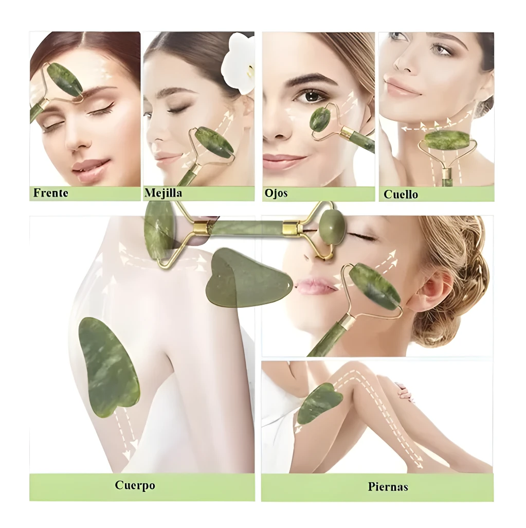 - 📈 Mejora la Circulación: La frescura del jade y el masaje estimulan el flujo sanguíneo, lo que contribuye a un cutis más saludable, oxigenado y con un tono uniforme.