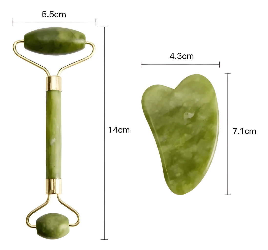 - ✅ Piedra Gua Sha Incluida: Complementa el rodillo, diseñada con una forma específica para un masaje más profundo y contorneado en rostro y cuerpo, ayudando a liberar tensiones.