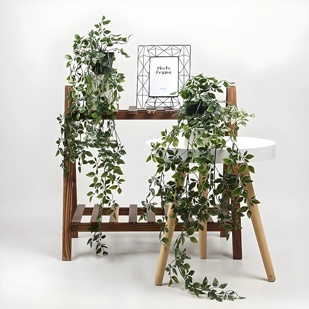 - ✅ Fácil de Colgar y Ajustar: La planta viene lista para instalar con un gancho resistente, permitiendo una colocación rápida y sencilla, y la posibilidad de ajustar su altura.