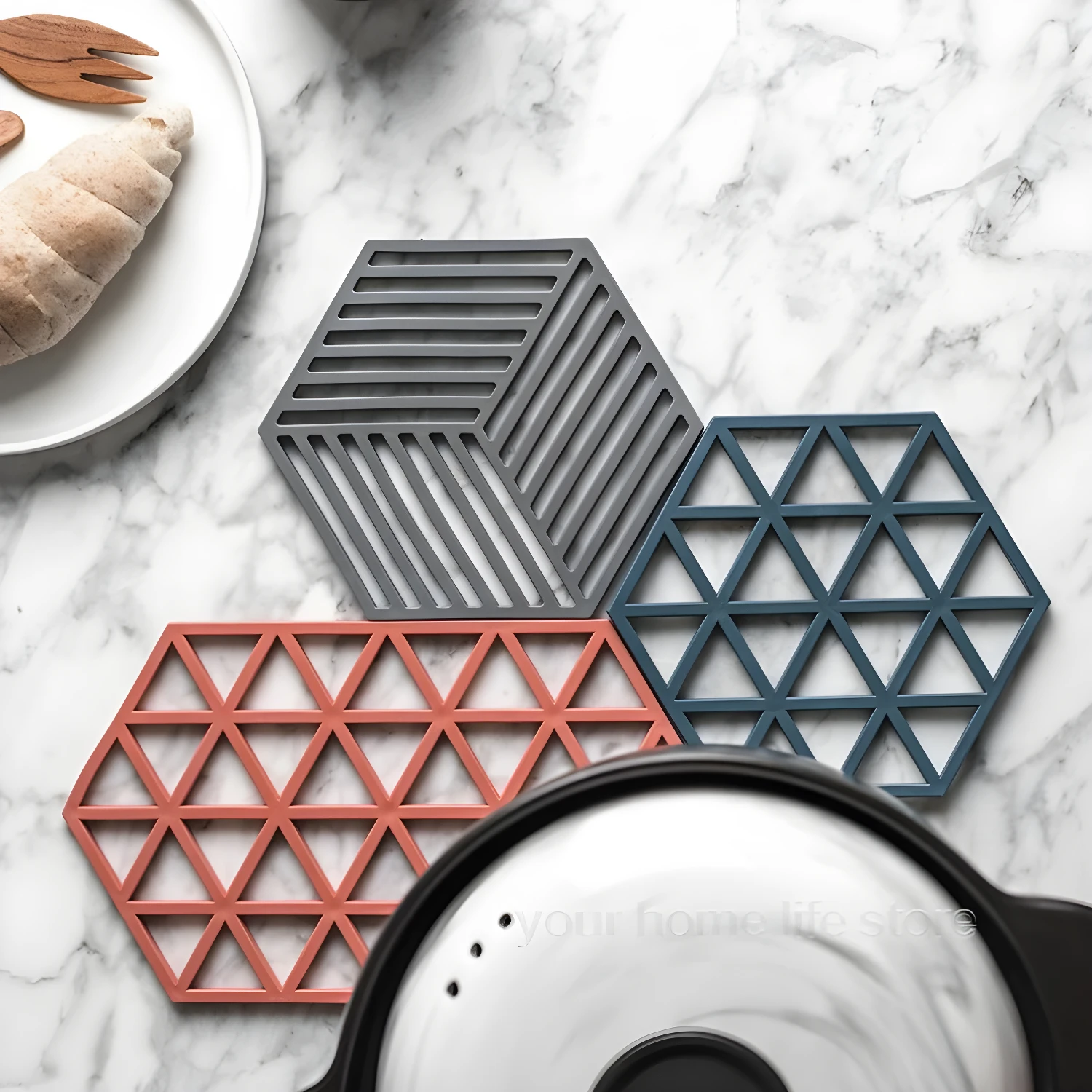 Eleva el estilo de tu mesa con este set de 4 posavasos de silicona con diseños hexagonales. 🎨 Estos versátiles posavasos no solo protegen tus superficies del calor y las manchas, sino que también añaden un toque moderno y sofisticado a cualquier espacio. ✨ Ideales para bebidas frías o calientes, son el complemento perfecto para tu hogar, oficina o para regalar. ☕🏠