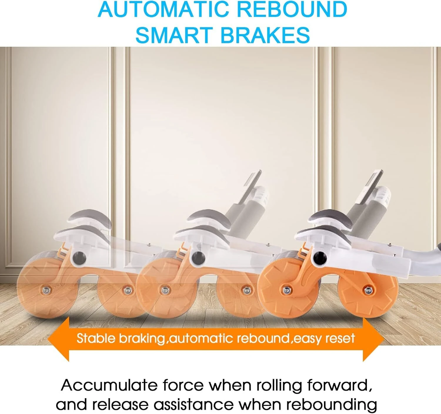 - Este Rodillo Rueda Abdominal se distingue por su innovadora tecnología de rebote automático, que facilita el retorno y previene lesiones, haciéndolo más fácil de usar. Además, cuenta con un diseño multifuncional dos en uno que combina el rodillo abdominal con soporte para planchas, y sus ruedas dobles anchas de 4 pulgadas ofrecen una estabilidad y seguridad superiores, a diferencia de los diseños de una sola rueda.