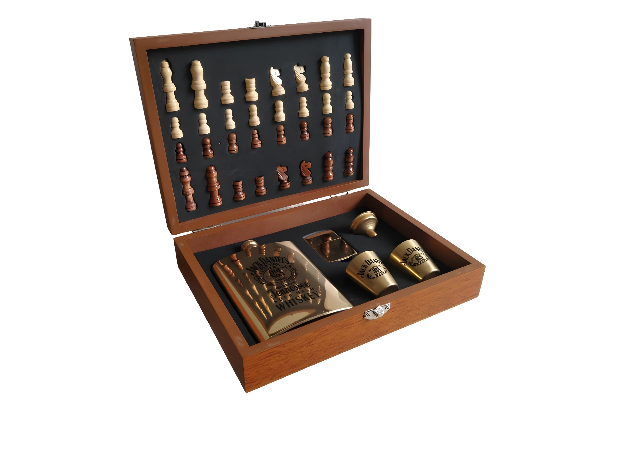 - 🎯 Elegancia y Funcionalidad: La combinación de un set de ajedrez con una licorera y accesorios de licor te permite disfrutar de dos pasiones en un solo lugar, ideal para momentos de relajación o celebraciones especiales.