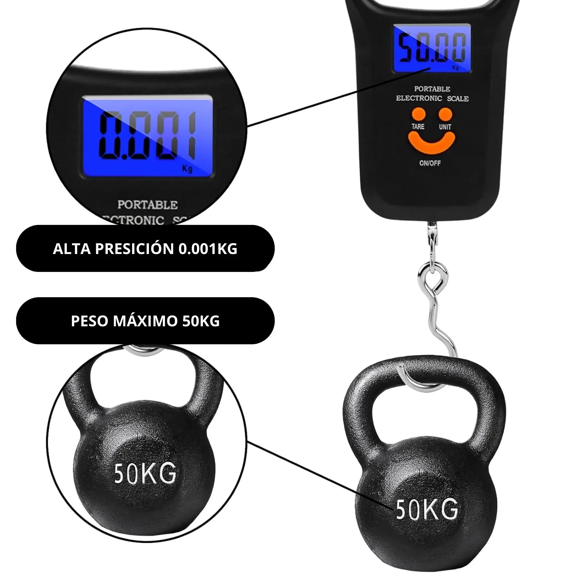 - 💡 Claridad en cualquier momento: La pantalla retroiluminada asegura que puedas leer el peso con facilidad, de día o de noche.