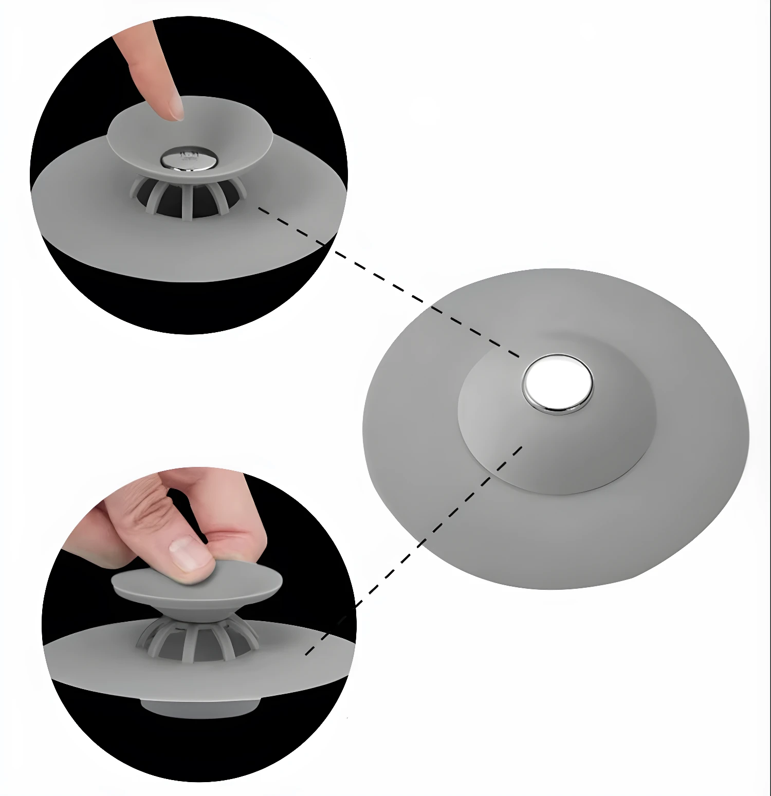 - Este innovador accesorio está diseñado para cumplir una doble función en sus desagües: actúa como un eficaz tapón para retener el agua en bañeras o lavamanos, y simultáneamente, como un filtro para atrapar cabellos y residuos, previniendo así obstrucciones en las tuberías. Su objetivo es mantener un flujo de agua libre y sus espacios limpios.