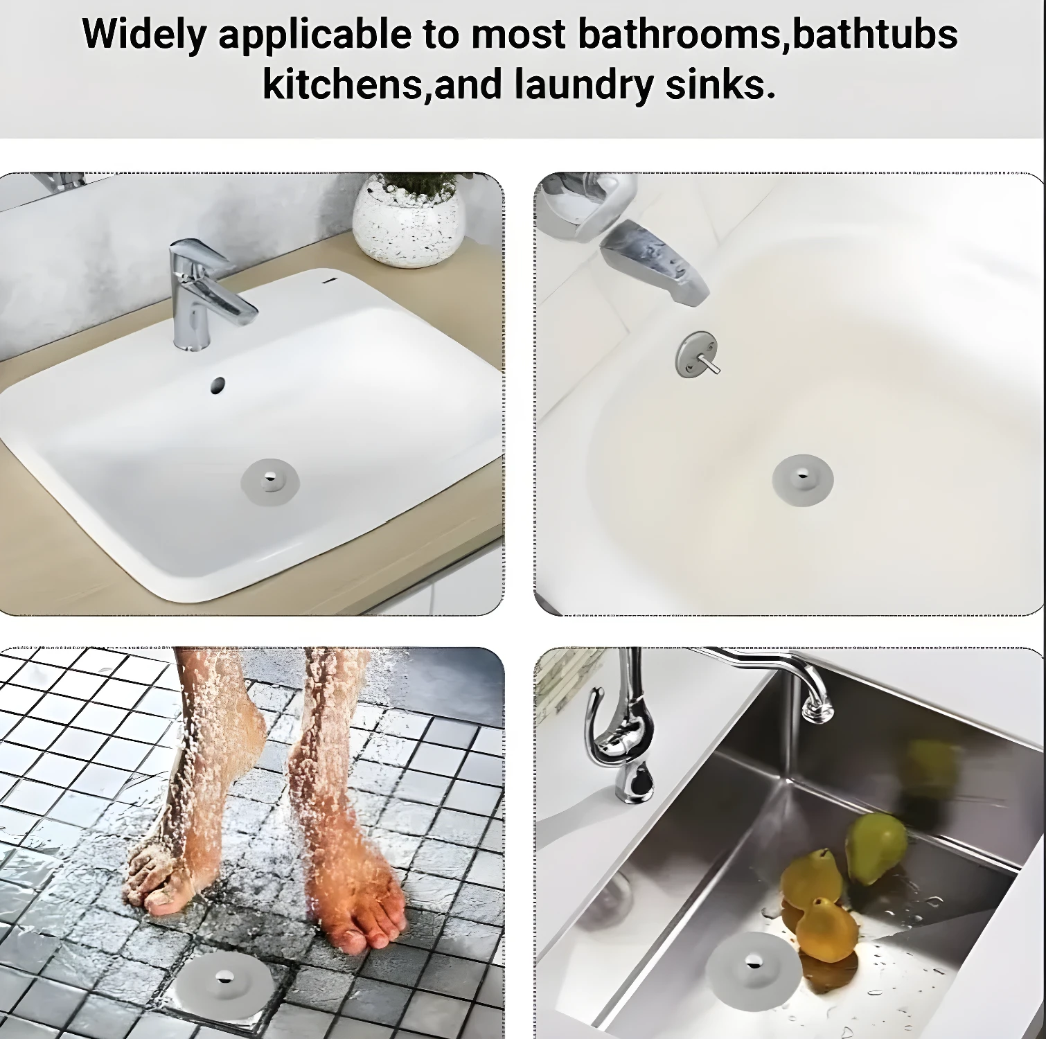 - Gracias a su diseño versátil, este tapón es adecuado para una amplia gama de desagües en su hogar. Es ideal para fregaderos de cocina, desagües de lavandería, duchas de baño, lavamanos y bañeras, ofreciendo una solución práctica para diferentes áreas.