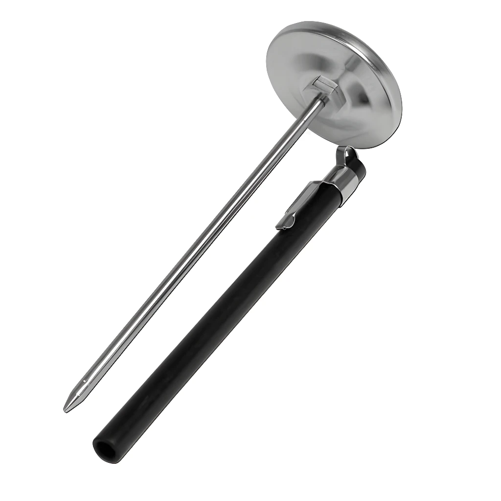 🌡️ Mide con precisión la temperatura de tus alimentos con nuestro Termómetro Bimetálico de Bolsillo. Este instrumento esencial para cualquier cocina moderna te asegura la cocción perfecta y la seguridad alimentaria. Su diseño robusto en acero inoxidable y su esfera de fácil lectura lo convierten en el compañero ideal para parrillas, hornos y líquidos. ¡Un indispensable para chefs aficionados y profesionales! 🧑🍳🔥💧