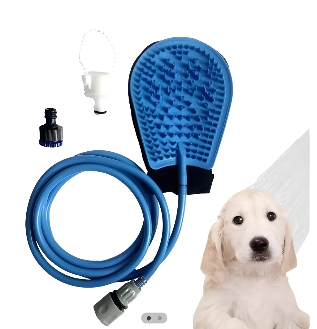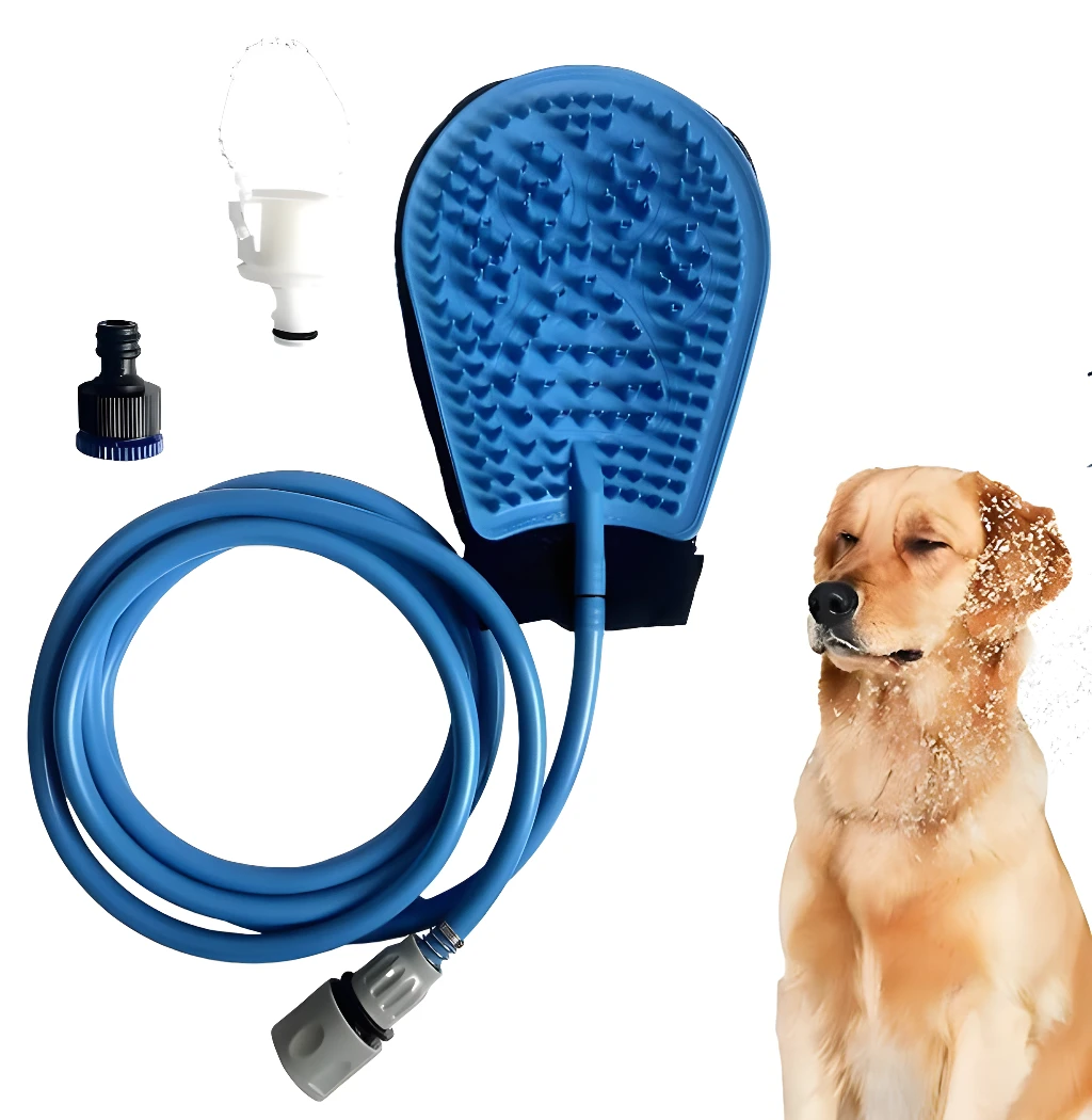 - ✅ Diseño 2 en 1: Combina un guante de aseo con un pulverizador de ducha, permitiendo lavar y masajear a tu mascota simultáneamente.