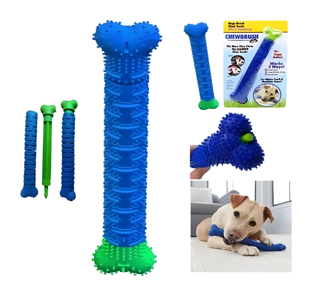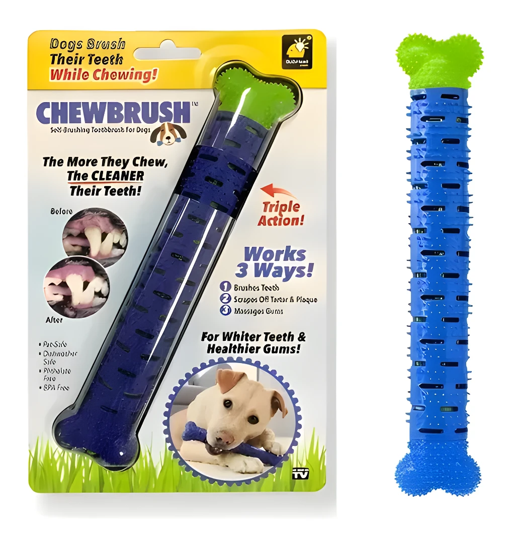🐾 Cuida la salud dental de tu perro de forma divertida y efectiva con el ChewBrush. Este innovador cepillo combina un juguete interactivo y una herramienta de limpieza dental, permitiendo que tu mascota elimine el sarro y la placa mientras juega y mastica con entusiasmo.