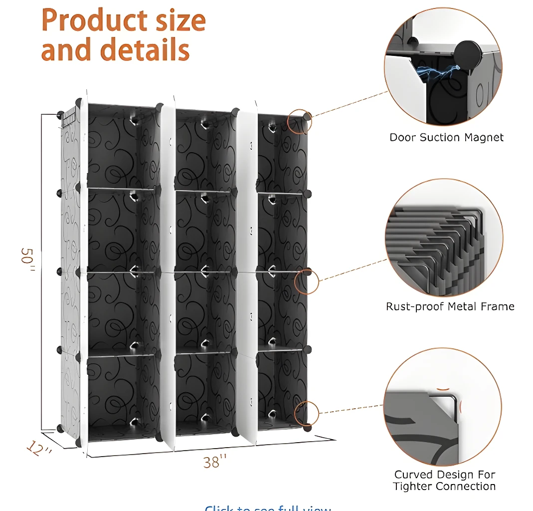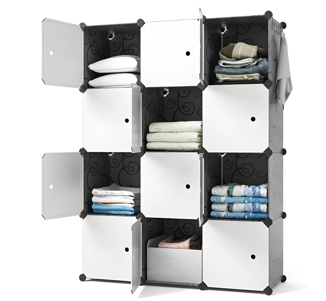 - ✅ Diseño Modular 4×3: Organiza tus pertenencias en 12 cubos espaciosos, distribuidos en tres cuerpos para máxima versatilidad.