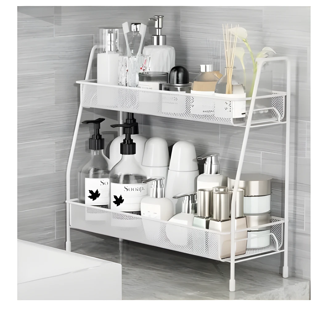 🏠 Optimiza cada rincón de tu hogar con nuestro Estante Organizador de 2 Niveles, la solución perfecta para mantener tus espacios impecables y funcionales. Este versátil organizador de cocina y baño ha sido diseñado meticulosamente para brindarte la máxima eficiencia en almacenamiento. Con su estructura de metal con rejilla, no solo añade un toque moderno y elegante a tu decoración, sino que también ofrece la durabilidad y resistencia que necesitas para organizar desde tus especias favoritas hasta tus productos de cuidado personal más preciados. ✨ ¡Dile adiós al desorden y transforma tu cocina, baño u oficina en un santuario de organización! 📊🧴🍲