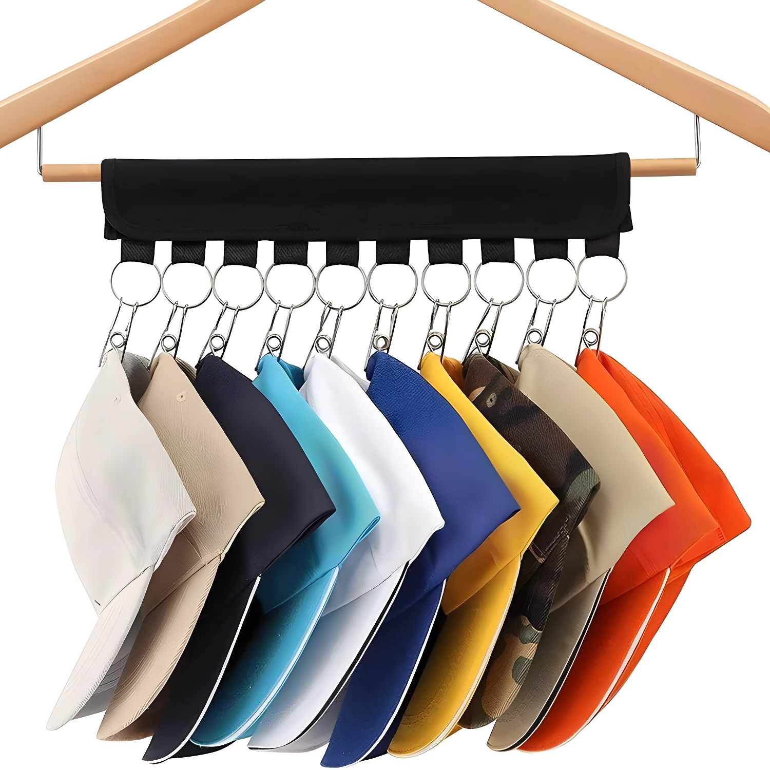 - ✅ Sistema de anillos: Cada gorra se sujeta de forma segura sin dañarse ni deformarse.