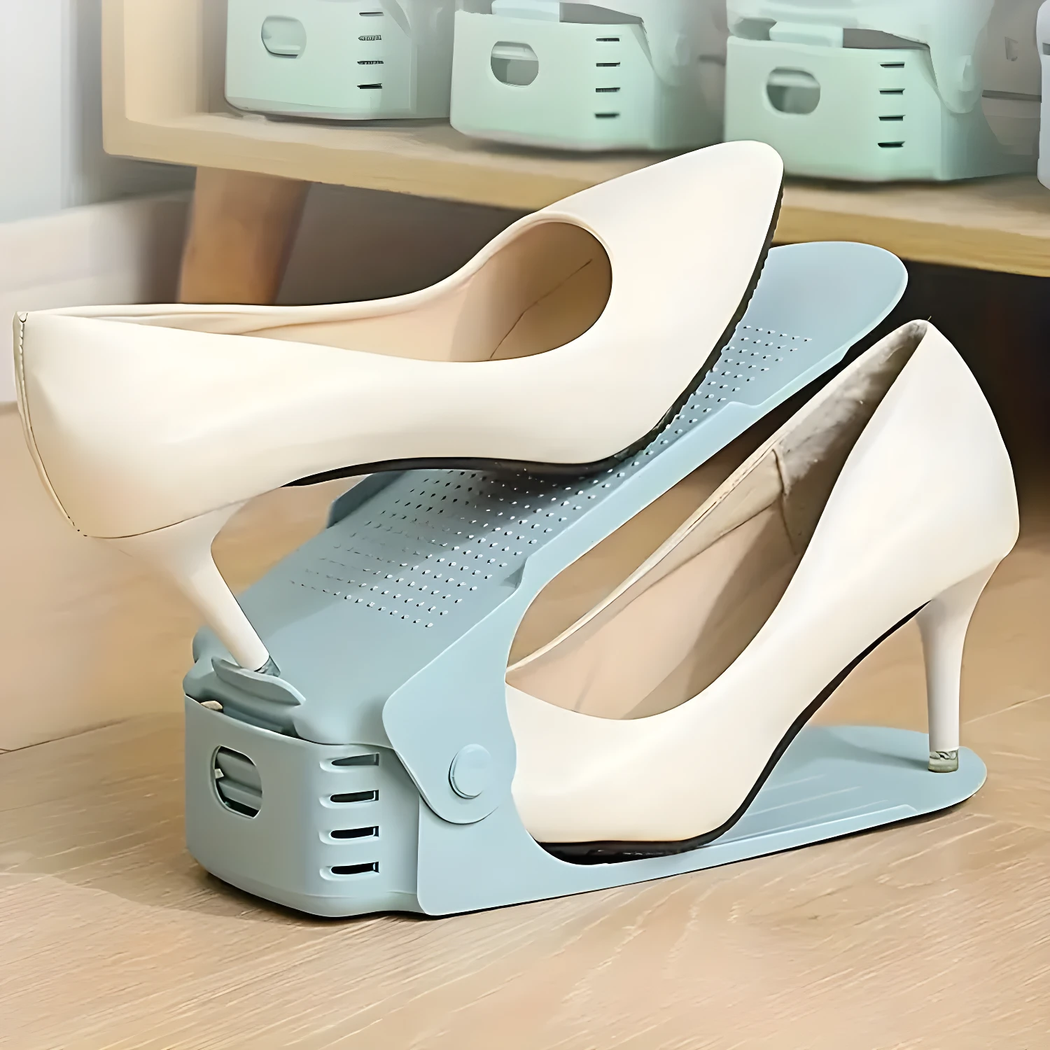 - ✅Diseño modular y ajustable: Cada organizador es independiente y se adapta a diferentes tipos de calzado, desde tacones altos hasta tenis.
