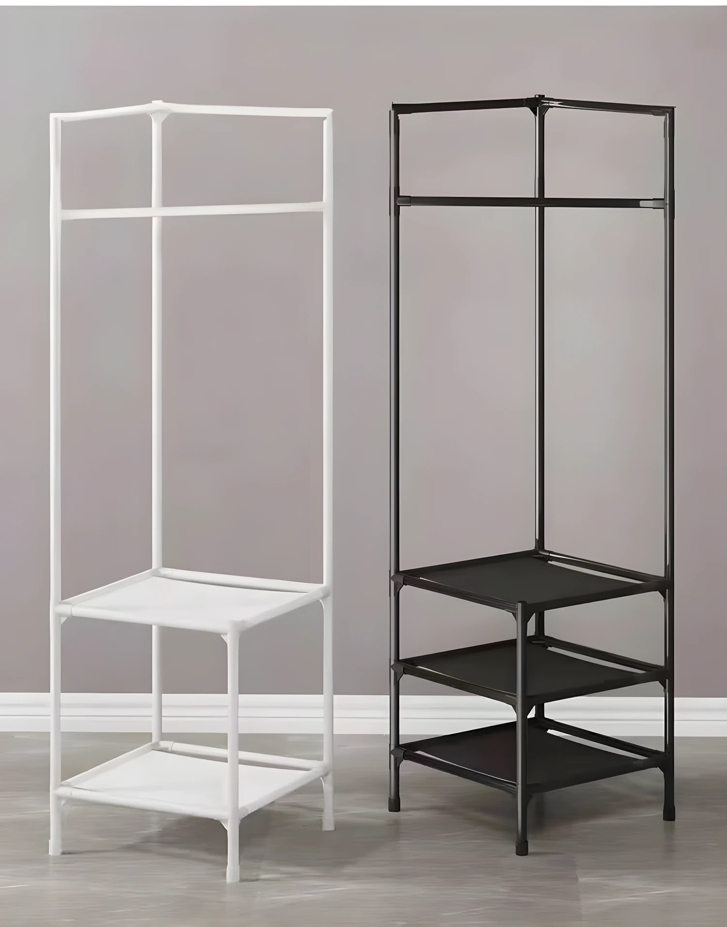 - Cuenta con una barra superior ideal para colgar camisas, abrigos, vestidos o sombrillas. Además, incluye tres estantes inferiores perfectos para organizar hasta 6 pares de zapatos, libros, bolsos, cajas o elementos decorativos, soportando una gran cantidad de artículos.