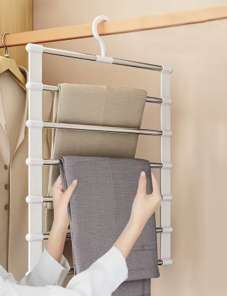 👖 Optimiza el espacio en tu armario con nuestro Perchero Múltiple tipo Escalera. Esta ingeniosa percha te permite organizar eficientemente pantalones, faldas, remeras y más, maximizando cada rincón de tu clóset. Ideal para quienes buscan una solución práctica y elegante para mantener su ropa ordenada y al alcance. ¡Transforma tu organización con un diseño súper práctico y funcional! ✨🏠👕