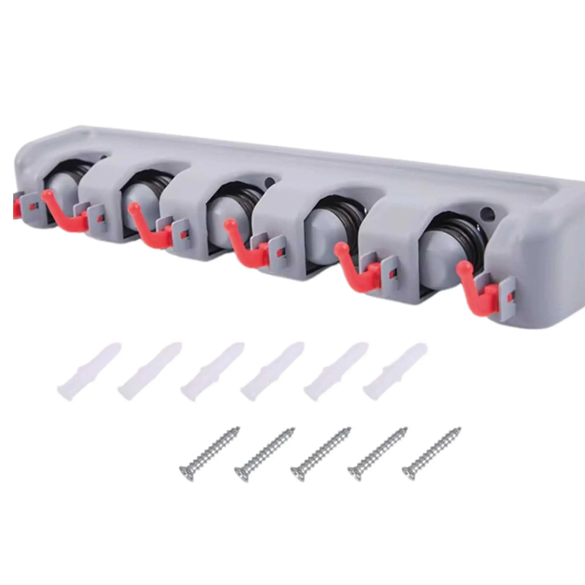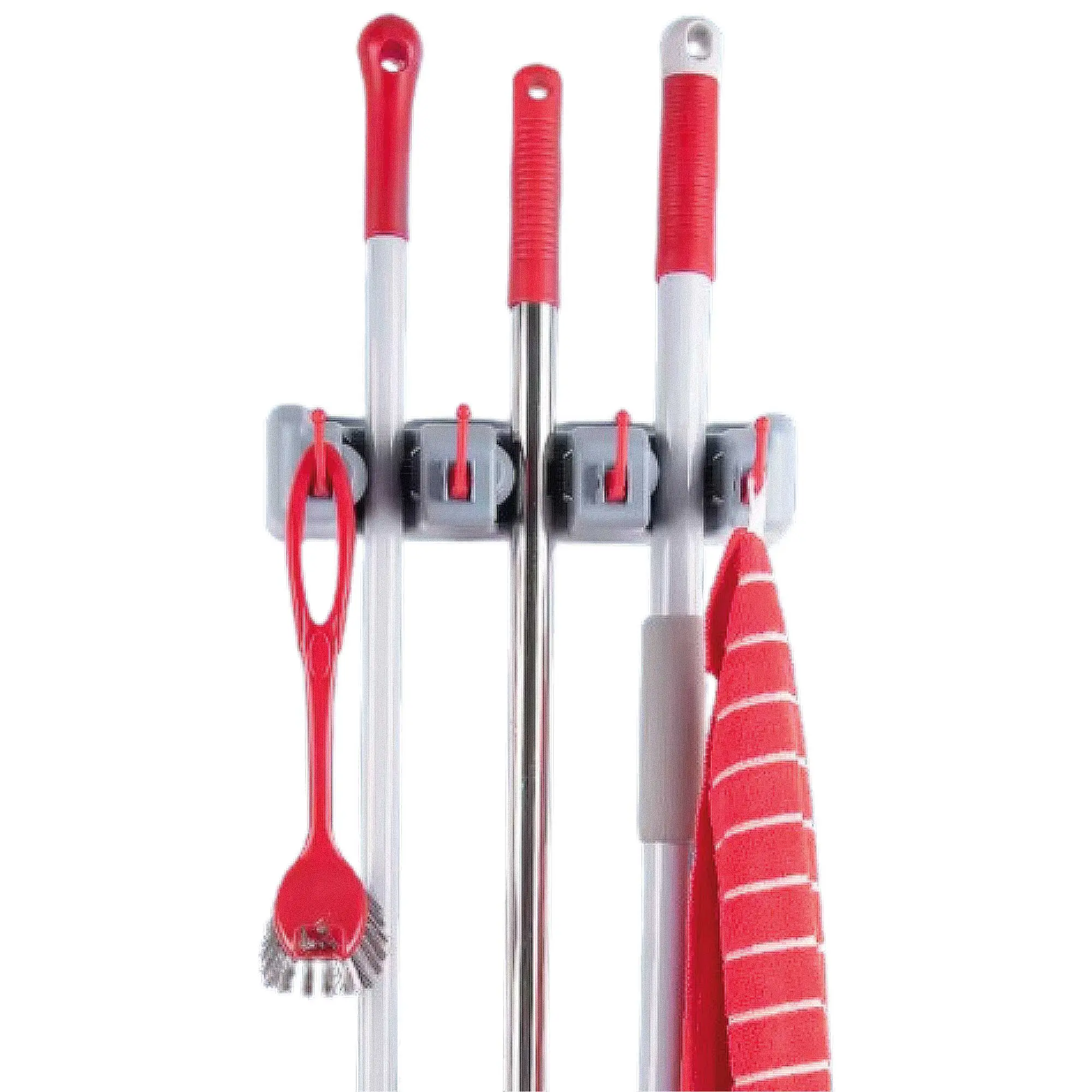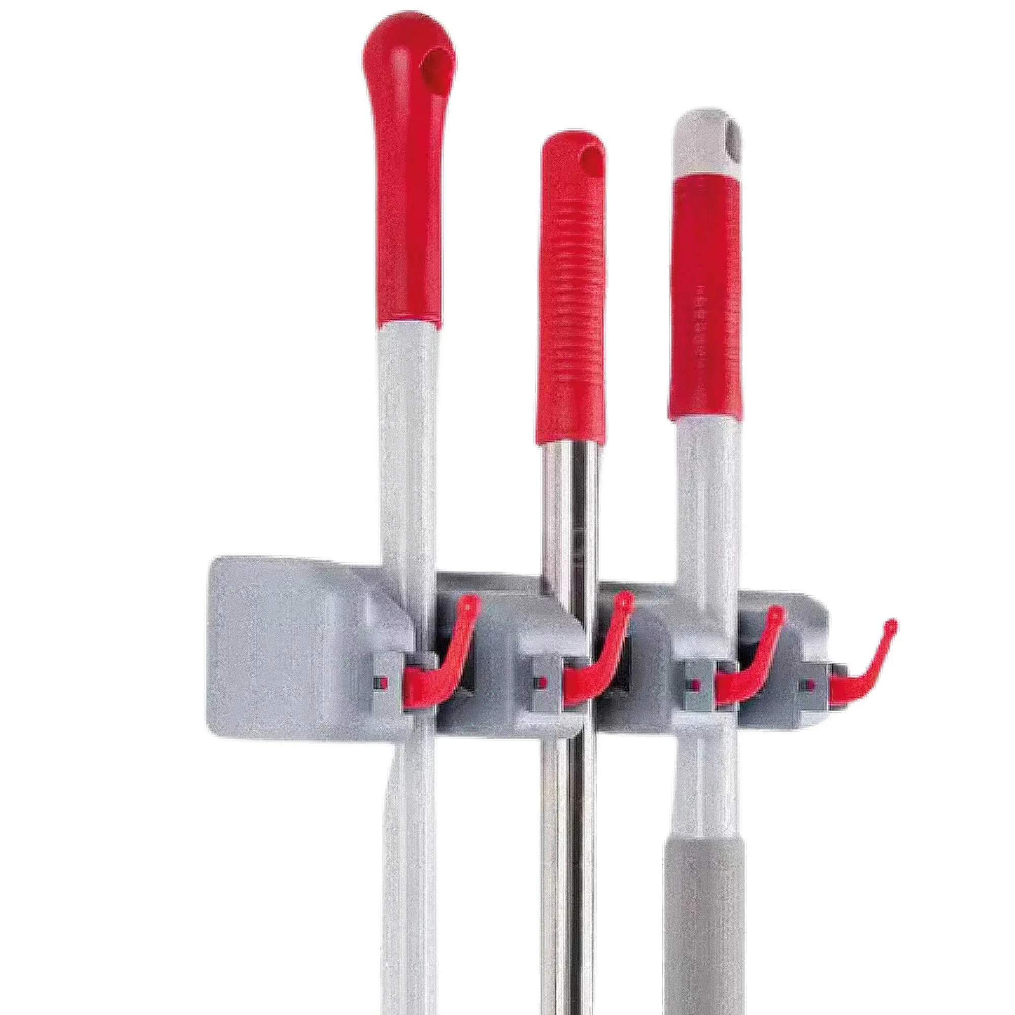 - ✅ Alta Capacidad: Cuenta con 5 ranuras de agarre automático, perfectas para sostener escobas, traperos o palos de diferentes diámetros.