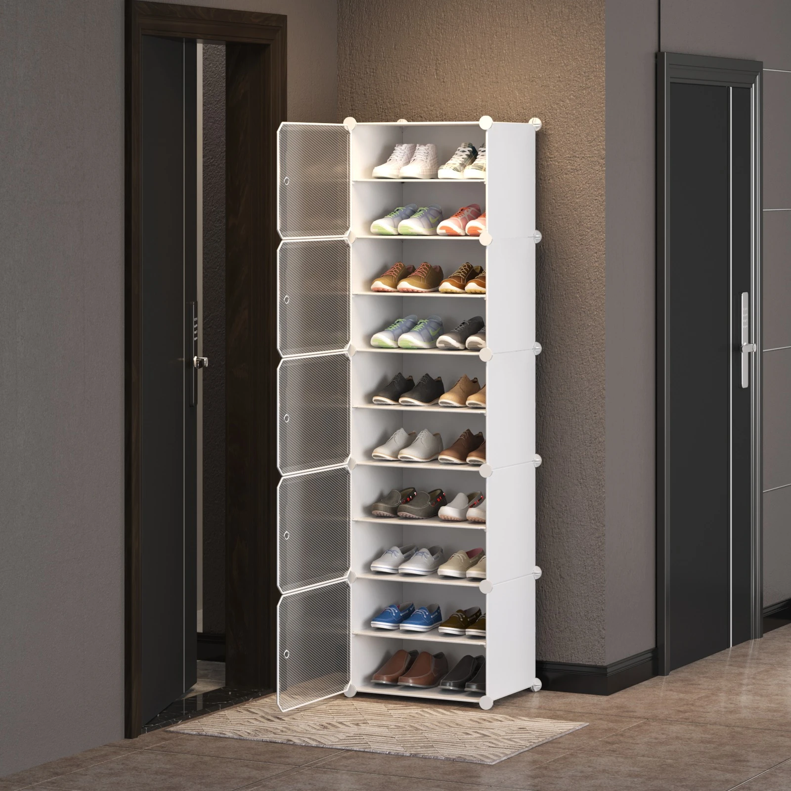 - ✅ 10 Niveles de Almacenamiento: Ofrece amplio espacio para organizar hasta 20 pares de zapatos o más, dependiendo del tamaño.