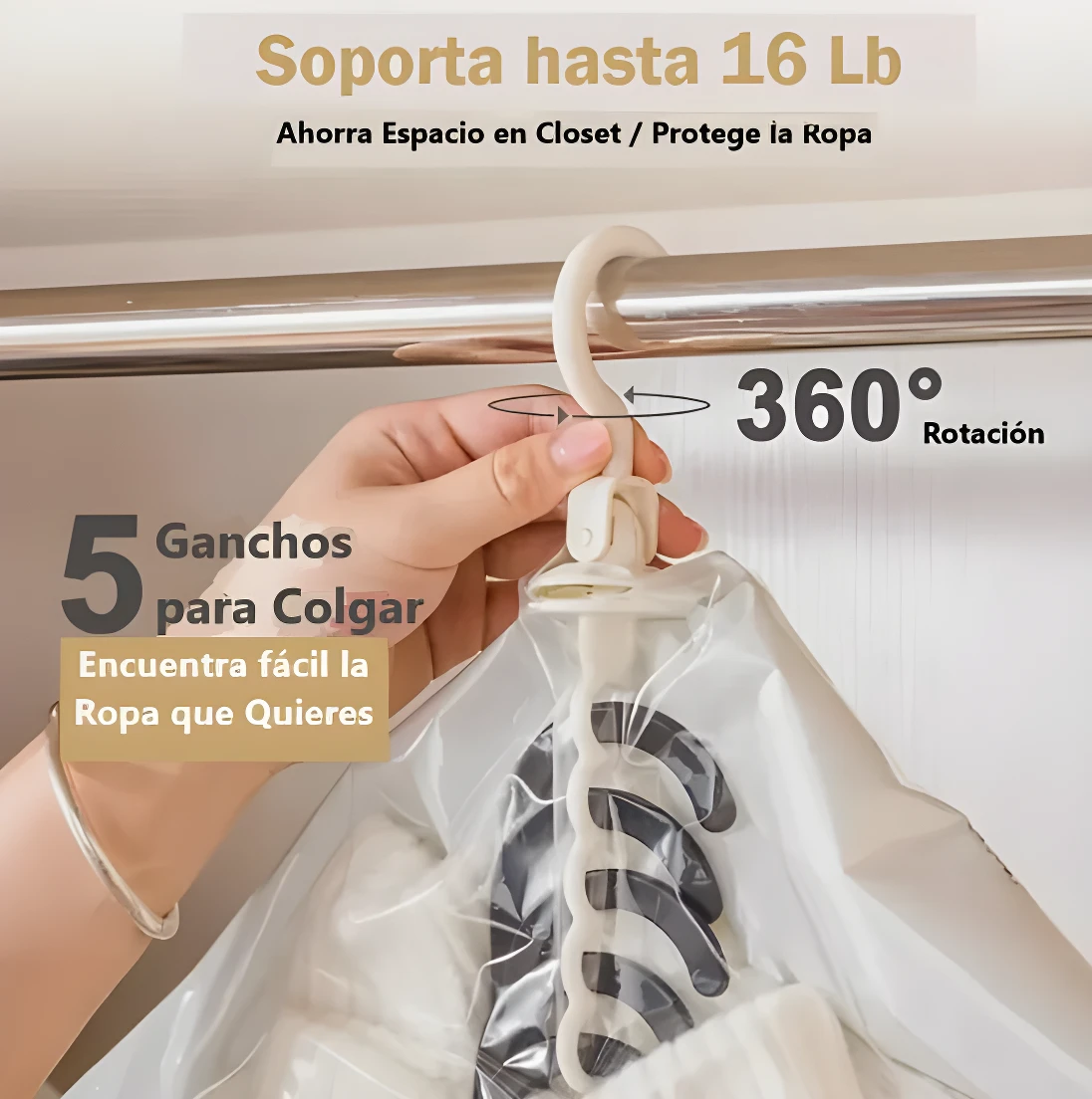 ✨ Ahorra 80% de espacio y protege tu ropa. Sin bomba, solo cierra y guarda. 🔒
