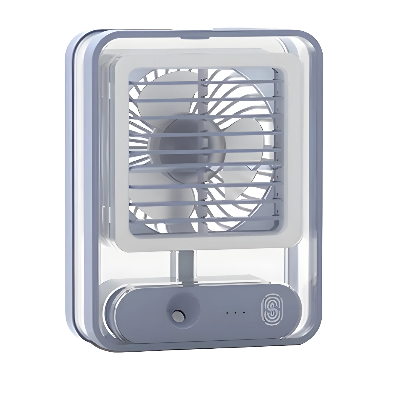 🌬️ Mantén un ambiente fresco y húmedo al instante para combatir el calor y la sequedad en tu espacio personal. Este ventilador combina refrigeración, nebulización y luz ambiental para tu comodidad. 💧