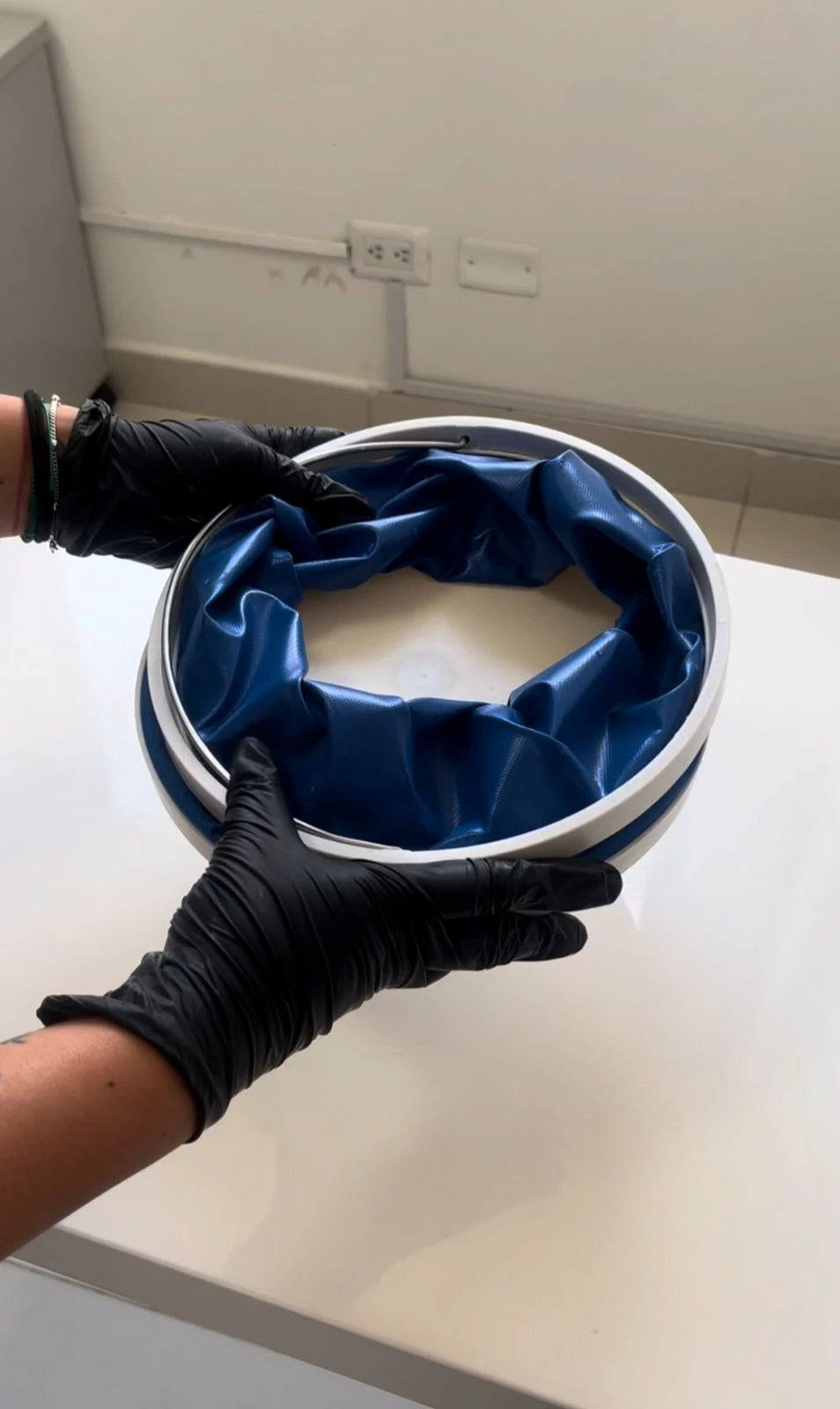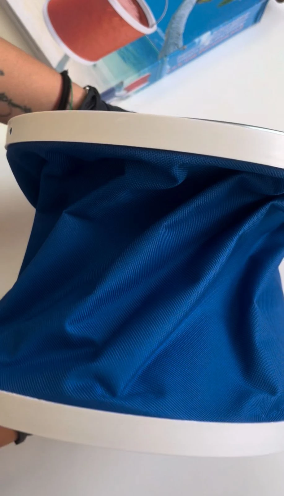 - 4️⃣ Para guardarlo, presiona suavemente el borde hacia adentro y pliega el cuerpo del balde.