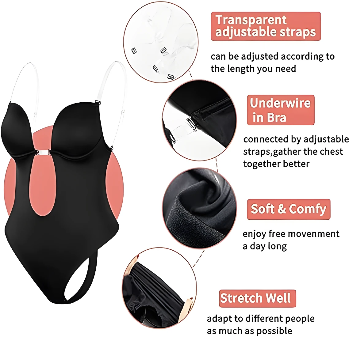 ✨ Luce tus outfits con escotes pronunciados sin preocupaciones. Este body moldea y estiliza tu figura, brindando soporte y una silueta definida. 👙