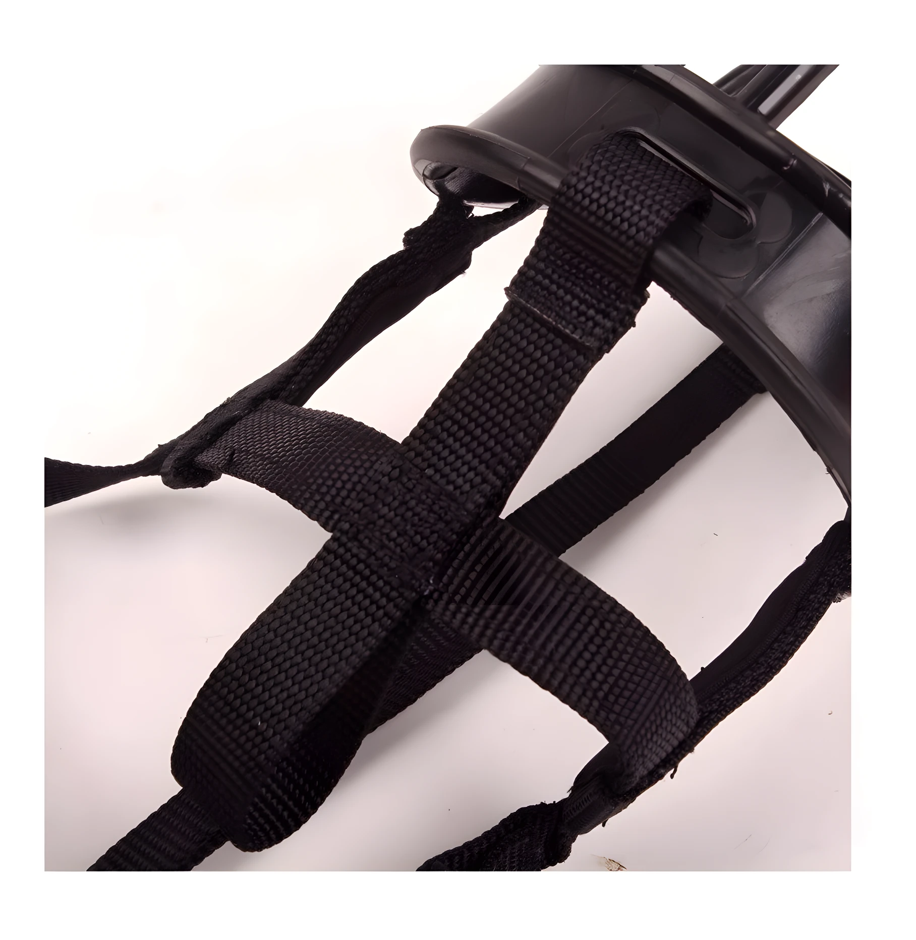 - 2️⃣ Asegura las correas alrededor de la cabeza y el cuello.