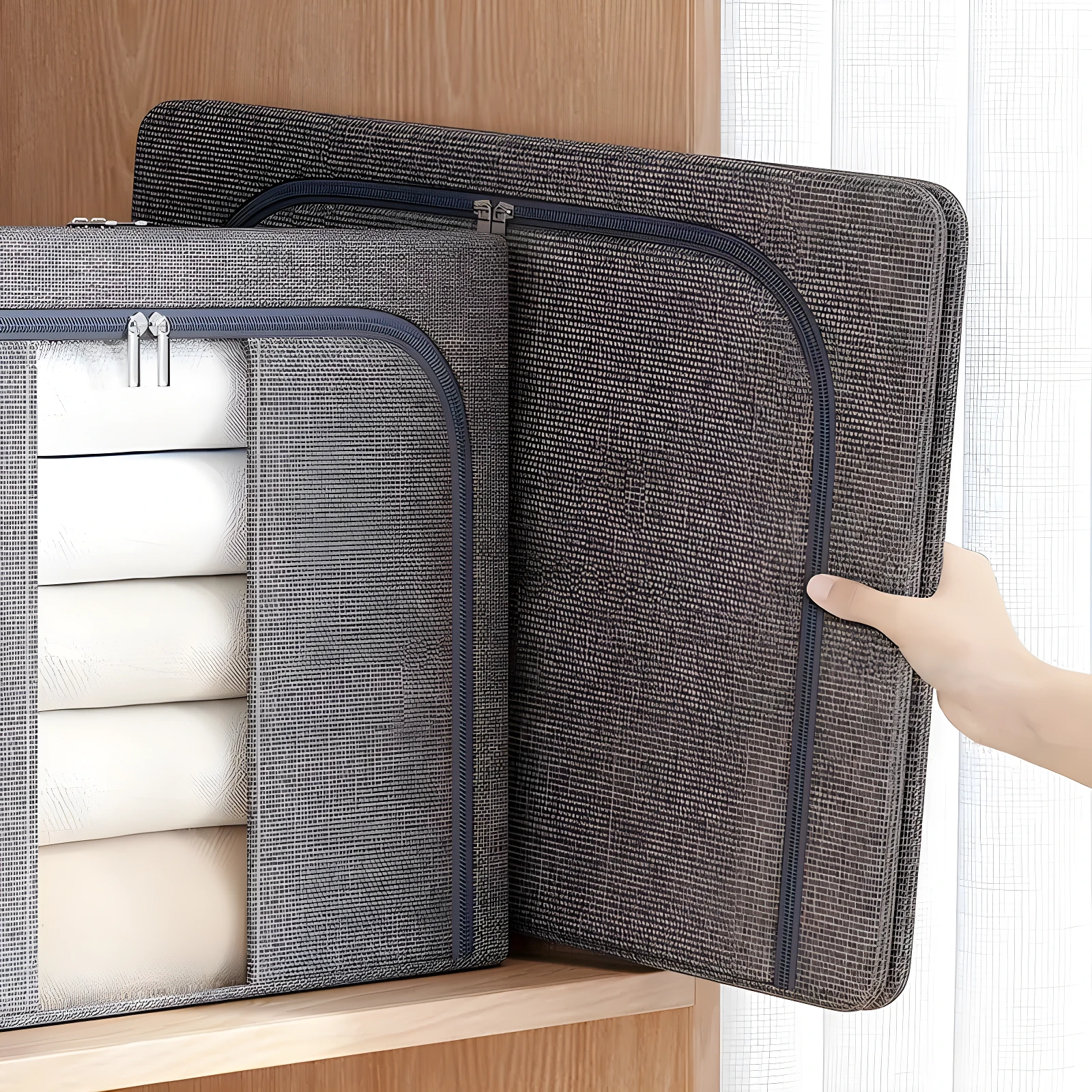 🛏️ Mantén tus sábanas y ropa plegada siempre accesibles y libres de desorden con este organizador de tela duradera. Facilita la gestión de espacios pequeños y armarios reducidos. ✨