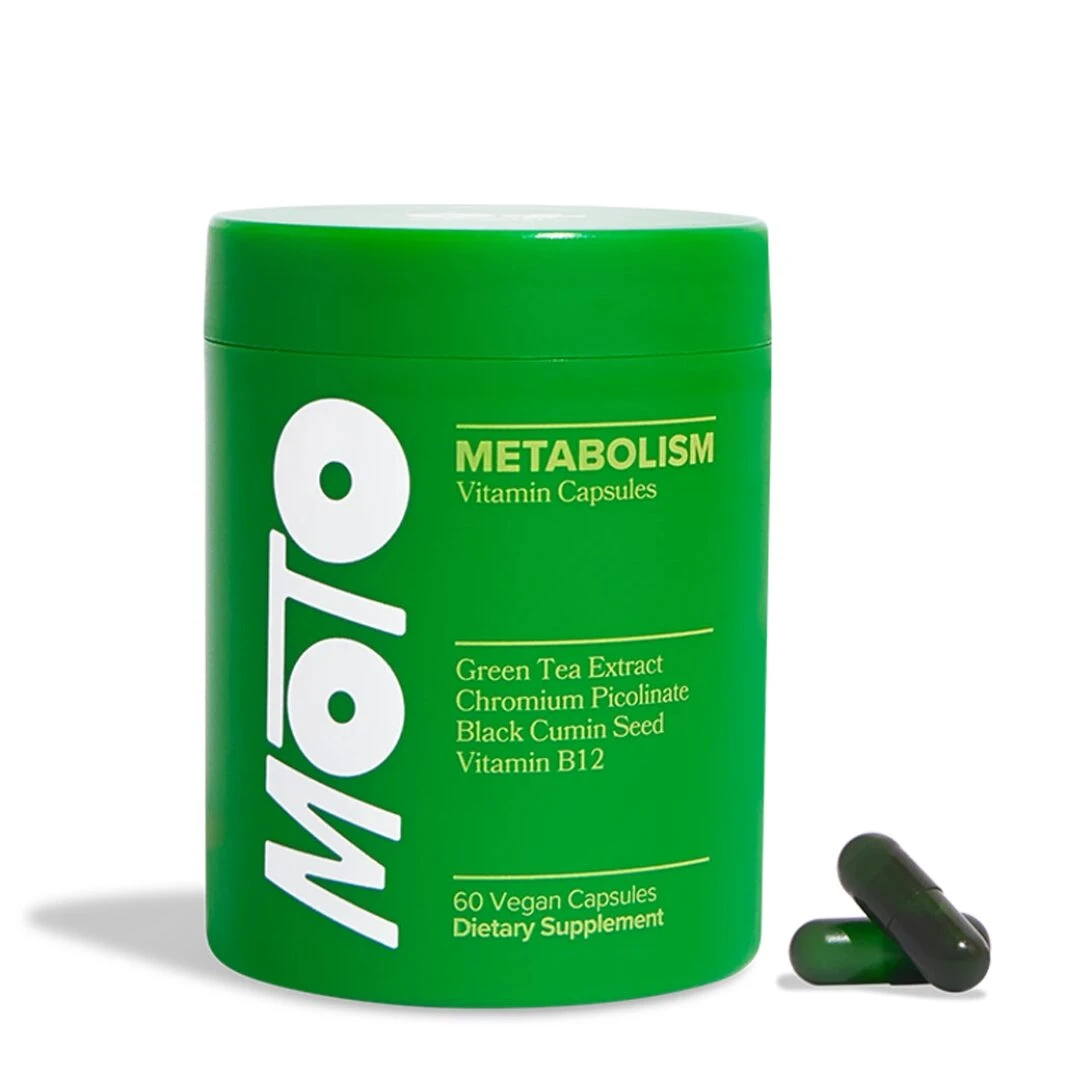 Las cápsulas MOTO son un suplemento dietario vegano para mujeres, formulado para apoyar el metabolismo, aumentar la energía y ayudar a controlar los antojos. Cada frasco contiene 60 cápsulas vegetales, libres de gluten y OGM, combinando ingredientes como extracto de té verde, cromo picolinato, semilla de comino negro y vitamina B12 para un enfoque integral del bienestar.