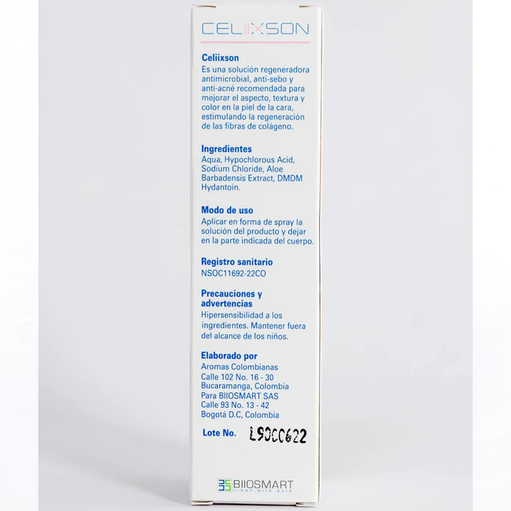 Celiixson es una solución regeneradora, antimicrobiana y anti-sebo en formato spray de 60 ml, diseñada para mejorar el aspecto, textura y color de la piel del rostro en personas con tendencia al acné. Elimina bacterias, regula la grasa facial y fomenta la producción de colágeno.